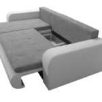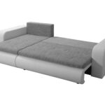 Model ten jest również bardzo praktyczny. Posiada duży pojemnik na pościel ukryty w otomanie. W ten sposób dodatkowe koce i poduszki są zawsze pod ręką, a salon pozostaje uporządkowany. Tkaniny użyte do obicia ułatwiają codzienne życie. Materiał jest łatwy w czyszczeniu za pomocą samej wody. Dlatego przypadkowe zabrudzenia nie będą już problemem. Ekologiczny charakter tkanin to dodatkowy atut.