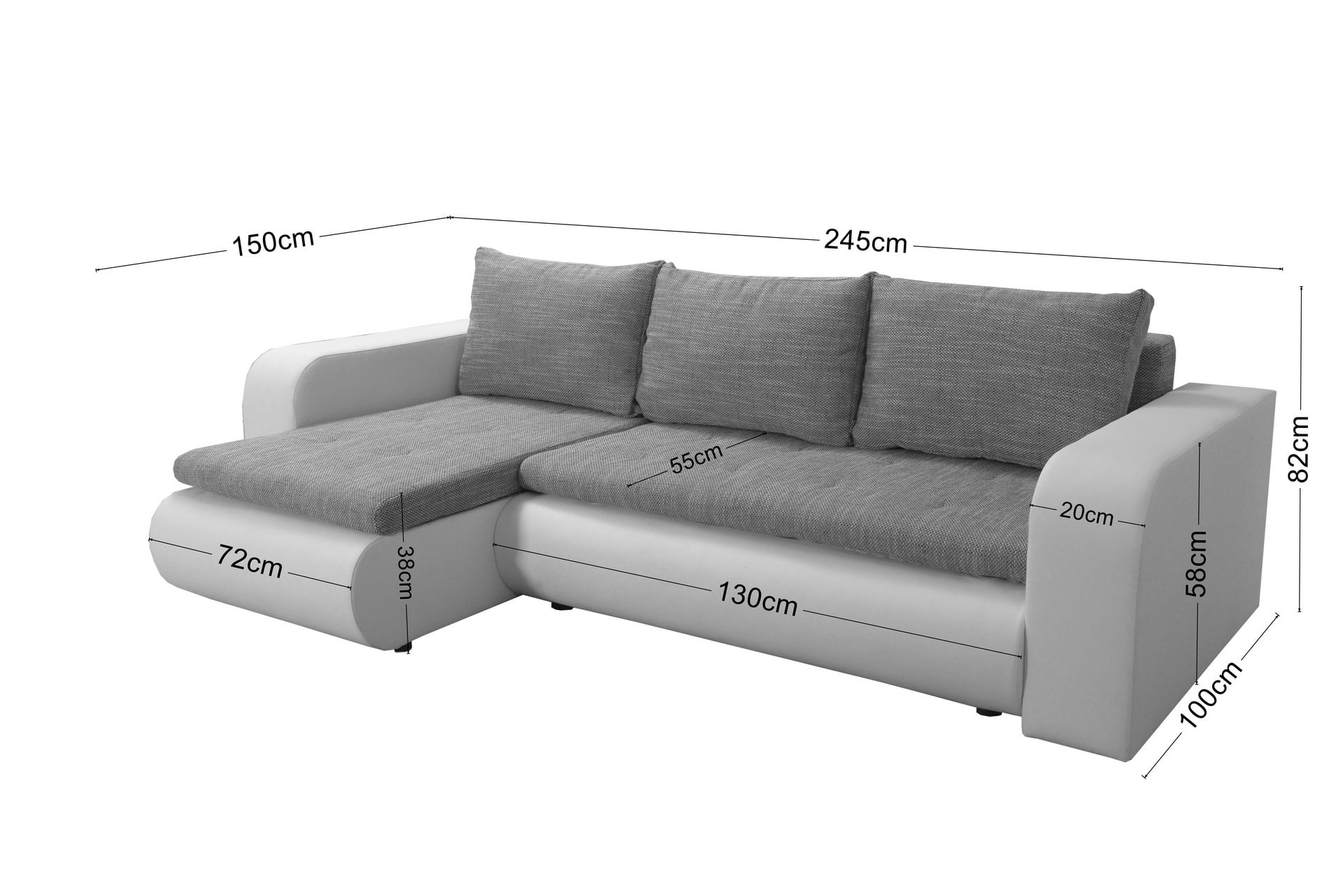 Oto szaro-czarny narożnik Brooklyn o klasycznym kształcie litery L. Jego elegancki wygląd tworzy kontrast trwałej plecionki z gładką ekoskórą.