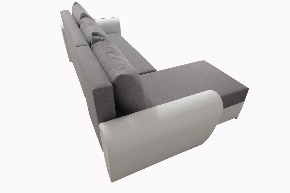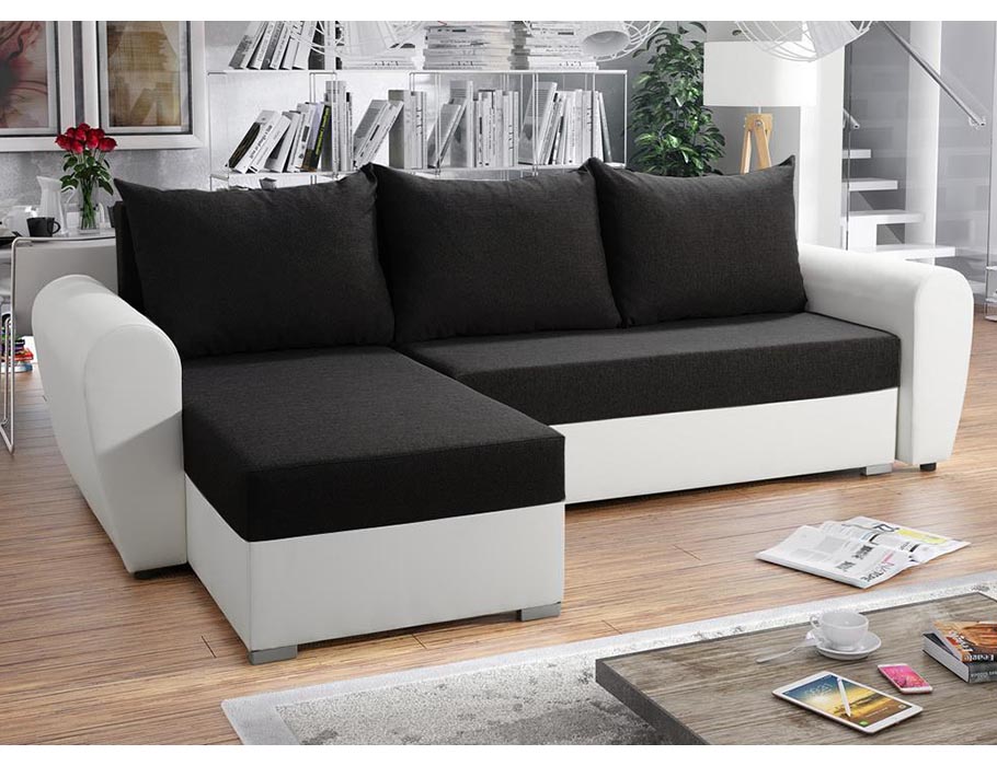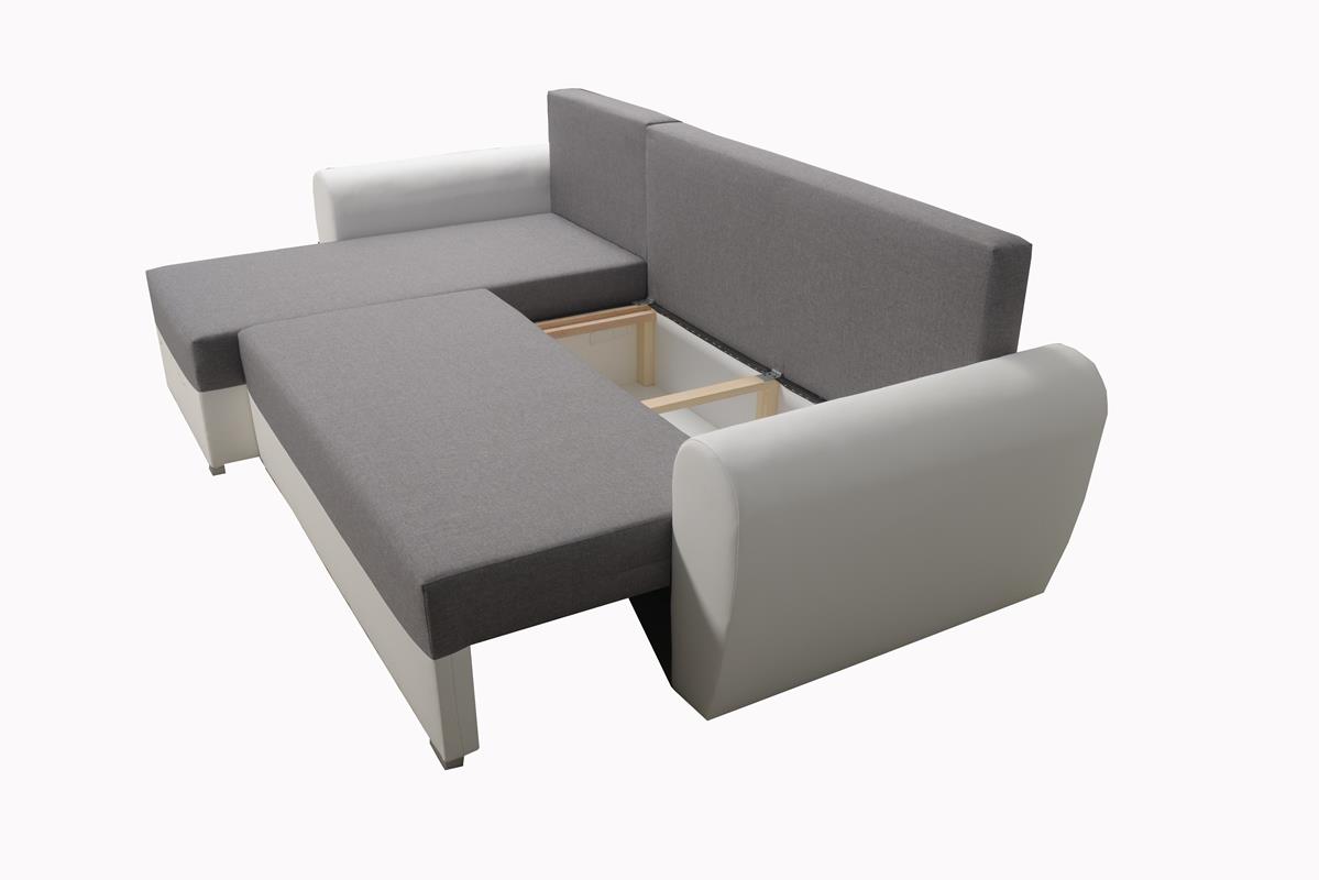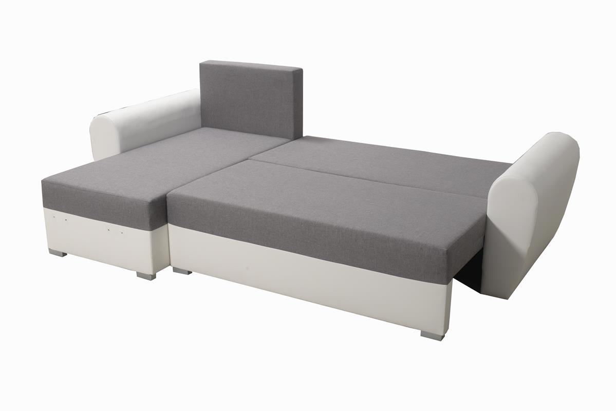 Narożnik Fiesta doskonale sprawdza się w dynamicznym trybie życia. W razie potrzeby można go łatwo przekształcić w wygodne miejsce do spania dla gości. Funkcja rozkładania typu DL działa płynnie i intuicyjnie. Wewnątrz mebla ukryto także duży pojemnik na pościel. Dzięki niemu dodatkowe kołdry, poduszki czy koce będą zawsze pod ręką, a w salonie zapanuje idealny porządek.