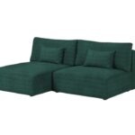 Narożnik Modulo w kolorze butelkowej zieleni to nowoczesny mebel ubrany w elegancki plusz. Jego uniwersalny kształt litery L doskonale organizuje przestrzeń w salonie, tworząc przytulny kącik wypoczynkowy dla całej rodziny. Tapicerowany tył pozwala na ustawienie go w dowolnym miejscu – także na środku otwartego pokoju.