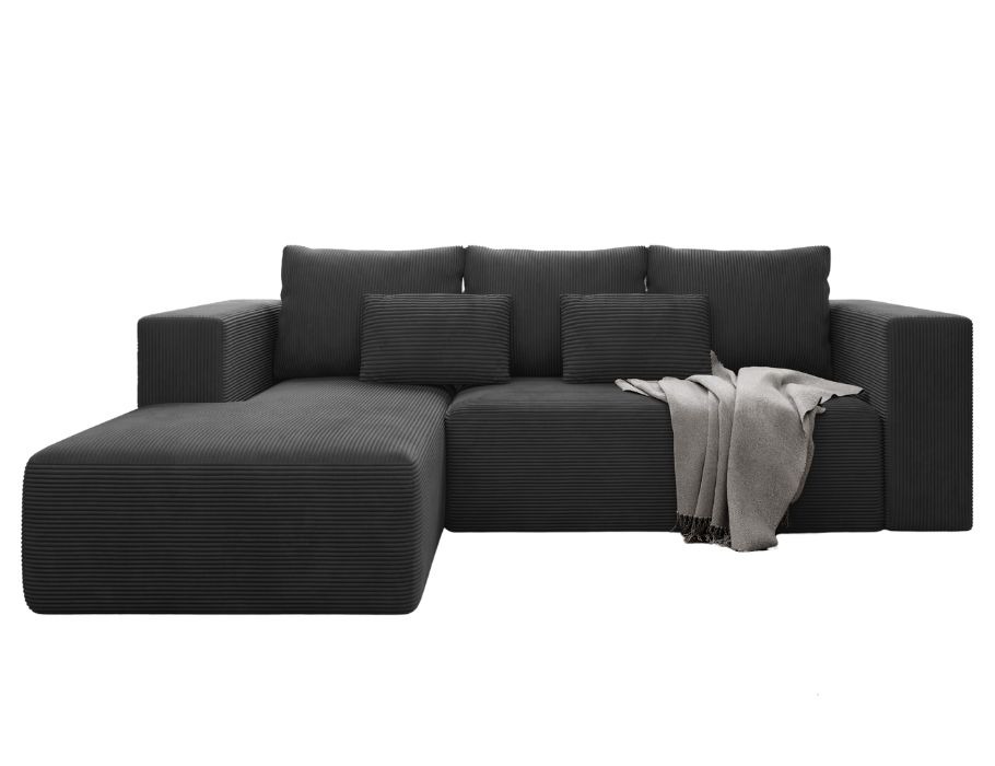 Grafitowy narożnik Stripes wnosi do domu poczucie spokoju i uporządkowanej przestrzeni. Staje się centralnym punktem salonu, gdzie komfort spotyka się z nienagannym stylem.