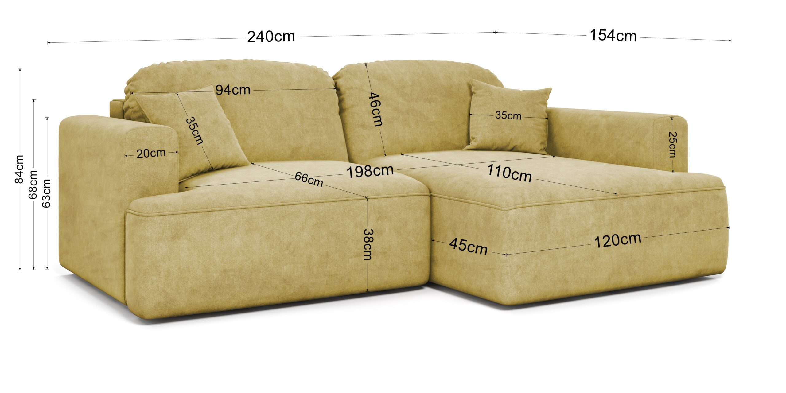 Narożnik Sunny to propozycja dla osób, które poszukują mebla łączącego nowoczesny styl, wygodę oraz praktyczne rozwiązania. Został wykonany na sprężynach falistych, co zapewnia odpowiednią elastyczność i stabilne podparcie. Dzięki temu zarówno siedzenie, jak i spanie na nim jest wyjątkowo komfortowe – idealne zarówno na co dzień, jak i podczas rodzinnych spotkań czy wizyt gości.