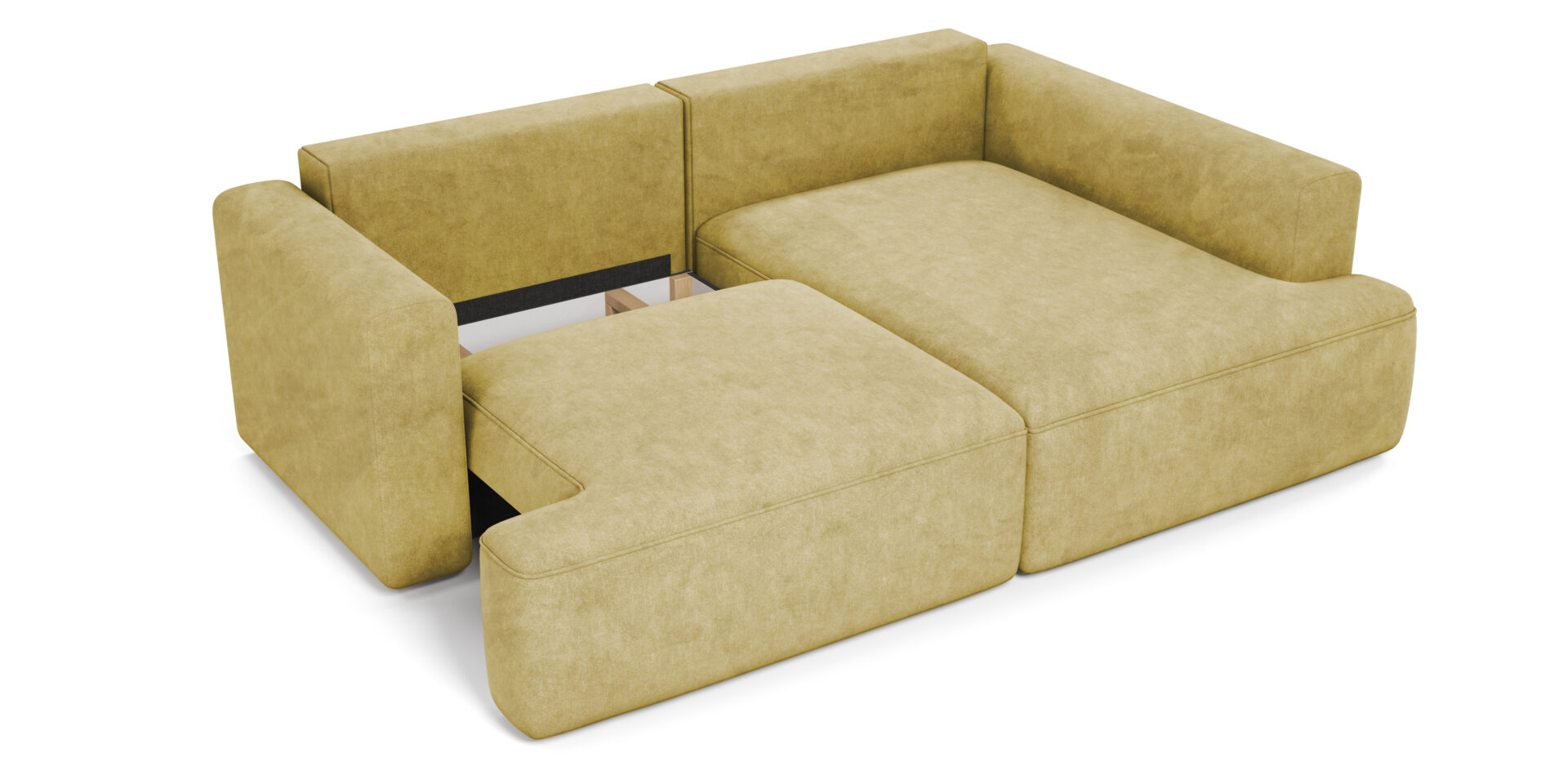 Model wyposażono w automat DL, który znacznie ułatwia i przyspiesza rozkładanie narożnika do funkcji spania. W kilka chwil można uzyskać równą i wygodną powierzchnię do nocnego odpoczynku. Dodatkowym atutem jest pojemny schowek na pościel, który pozwala przechowywać kołdry, poduszki czy koce zawsze pod ręką, bez zajmowania dodatkowego miejsca w szafie.