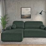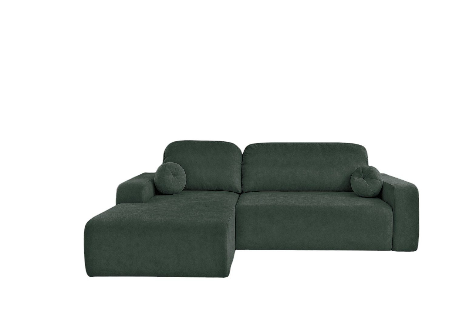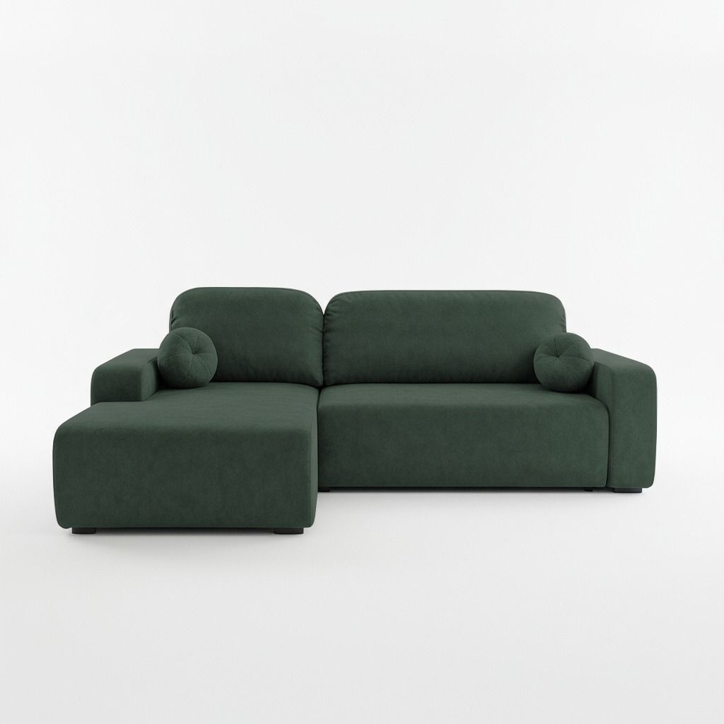 Narożnik z funkcją spania Tori lewy L-kształtny z pojemnikiem na pościel butelkowa zieleń welur