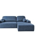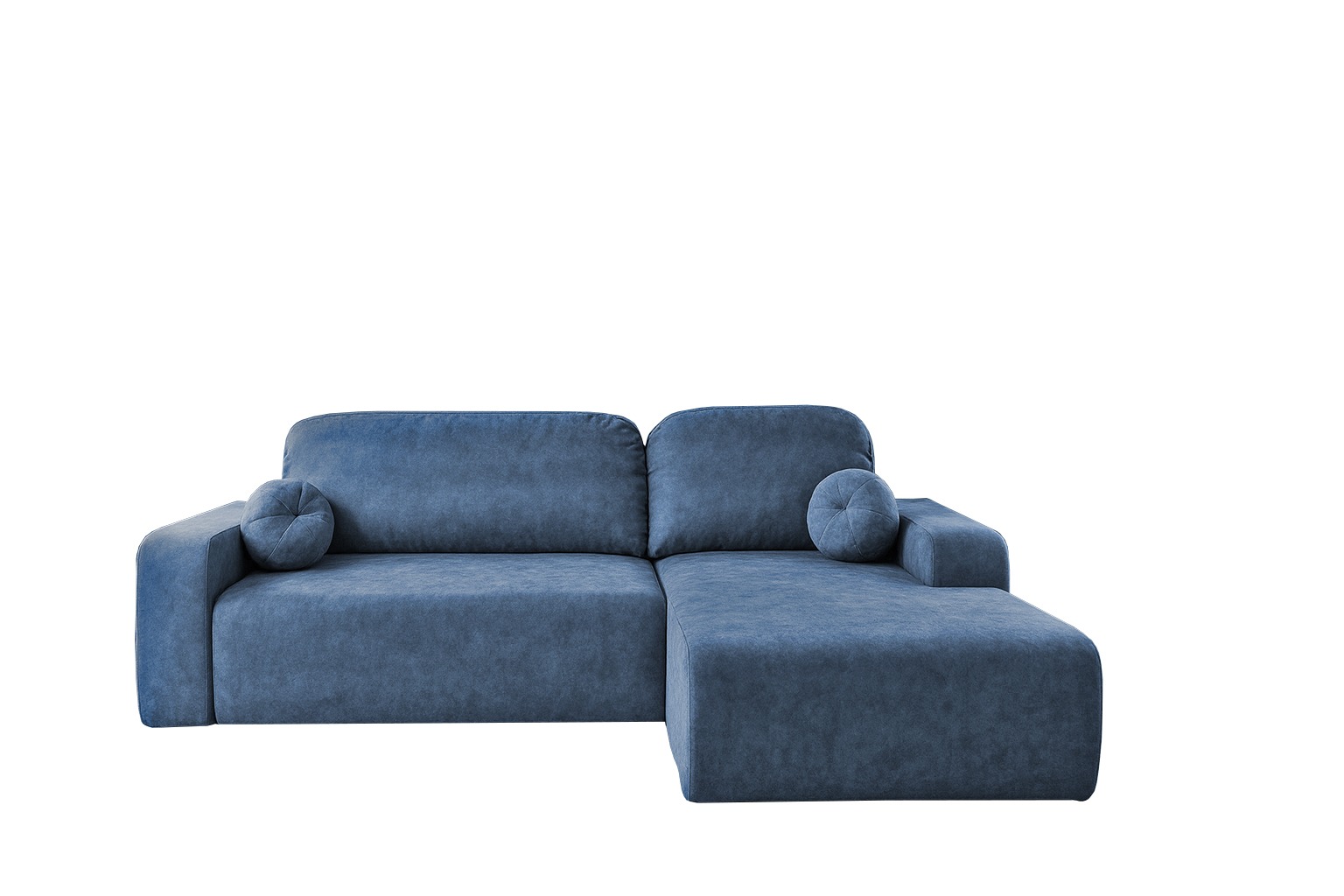 Narożnik z funkcją spania Tori prawy L-kształtny z pojemnikiem na pościel niebieski welur