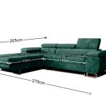 Narożnik został stworzony z myślą o codziennym komforcie. Dlatego siedzisko wypełniono sprężynami falistymi oraz elastyczną pianką. Zapewnia ono stabilne i wygodne podparcie podczas długich wieczorów z serialem. Z kolei regulowane zagłówki pozwalają dopasować wysokość oparcia do indywidualnych potrzeb. Dzięki temu można wygodnie oprzeć głowę podczas czytania książki lub popołudniowej drzemki.