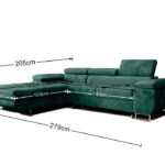 Narożnik wyposażono w intuicyjną funkcję spania. Rozkładanie za pomocą automatu Delfin jest szybkie i nie wymaga wysiłku. W ten sposób można w kilka chwil przygotować komfortowe miejsce do spania dla gości. Praktycznym dodatkiem jest także pojemnik na pościel. Pozwala on na dyskretne przechowywanie kołder i poduszek, pomagając utrzymać porządek w salonie.