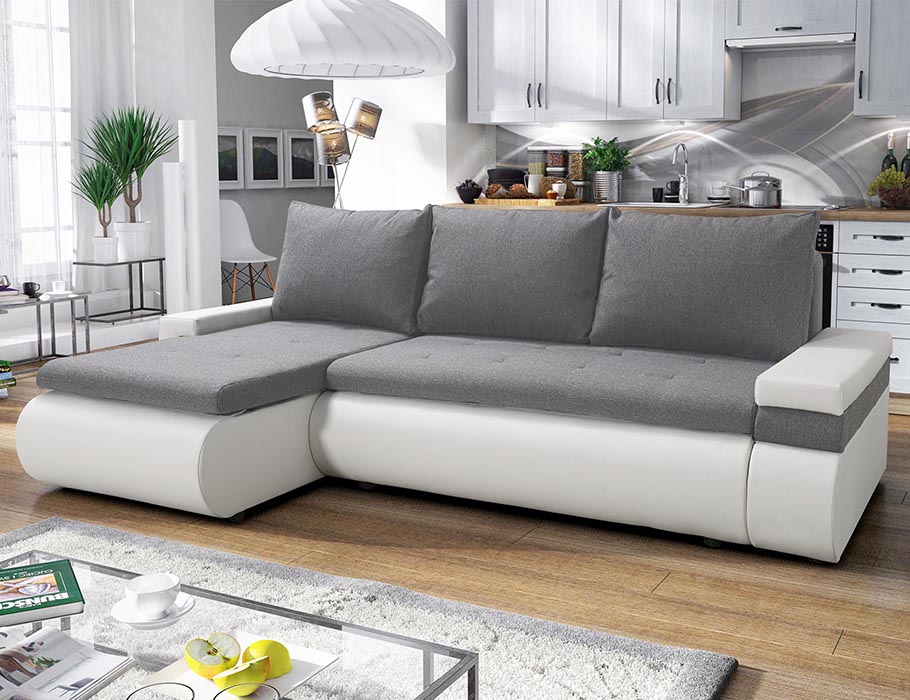Szaro-biały narożnik Manhattan to mebel o klasycznym wzornictwie i przemyślanej formie.