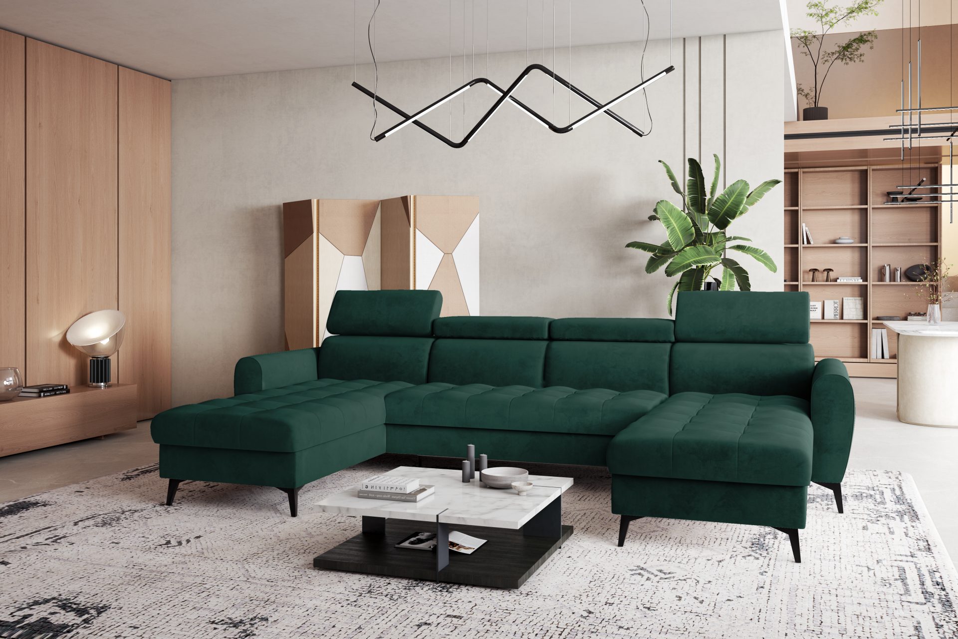 Narożnik Bjorn to elegancki i funkcjonalny narożnik w kształcie litery U, który idealnie sprawdzi się w przestronnym salonie. Łączy w sobie nowoczesny design, komfort użytkowania i praktyczne rozwiązania. Wykonany z wysokiej jakości welurowej tkaniny Monolith, zachwyca miękkością oraz odpornością na zabrudzenia i wilgoć – to doskonały wybór dla rodzin z dziećmi i właścicieli zwierząt domowych.
