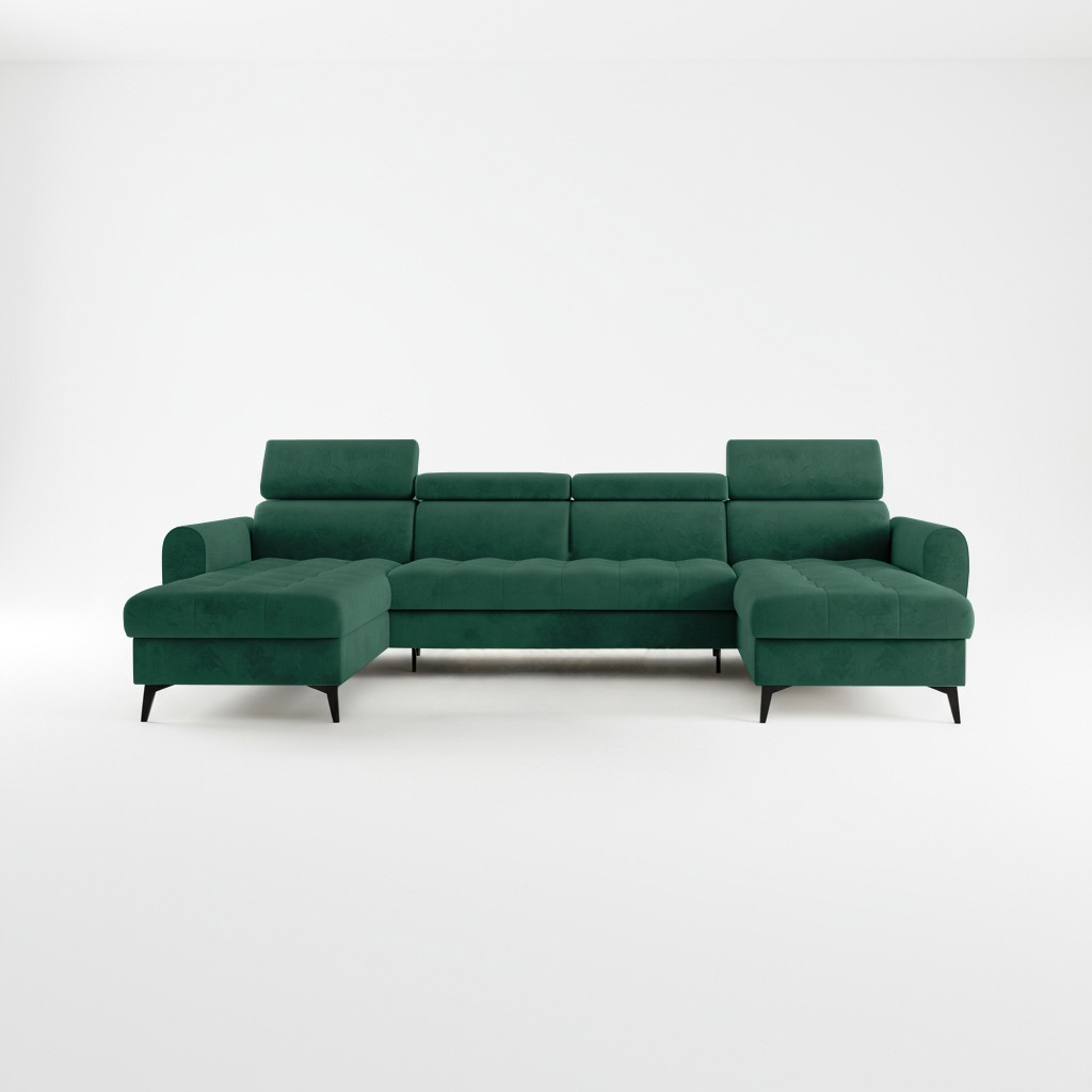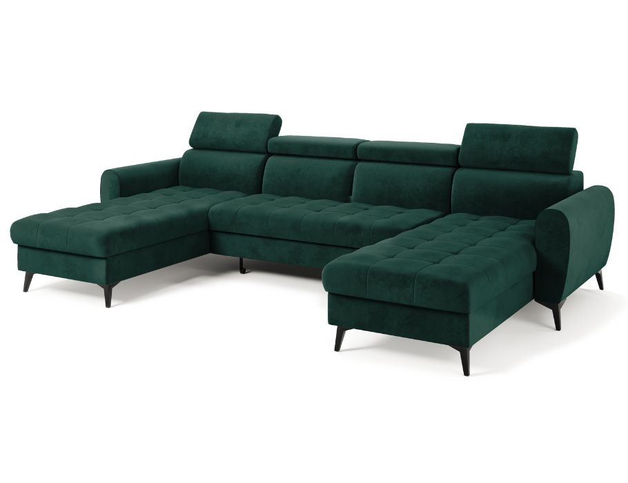 Narożnik Bjorn U wyróżnia się regulowanymi zagłówkami, które umożliwiają dostosowanie kąta oparcia do indywidualnych preferencji. To idealne rozwiązanie dla osób, które cenią sobie wysoki komfort wypoczynku. Pikowane siedziska nadają meblowi elegancji i podkreślają jego nowoczesny charakter.