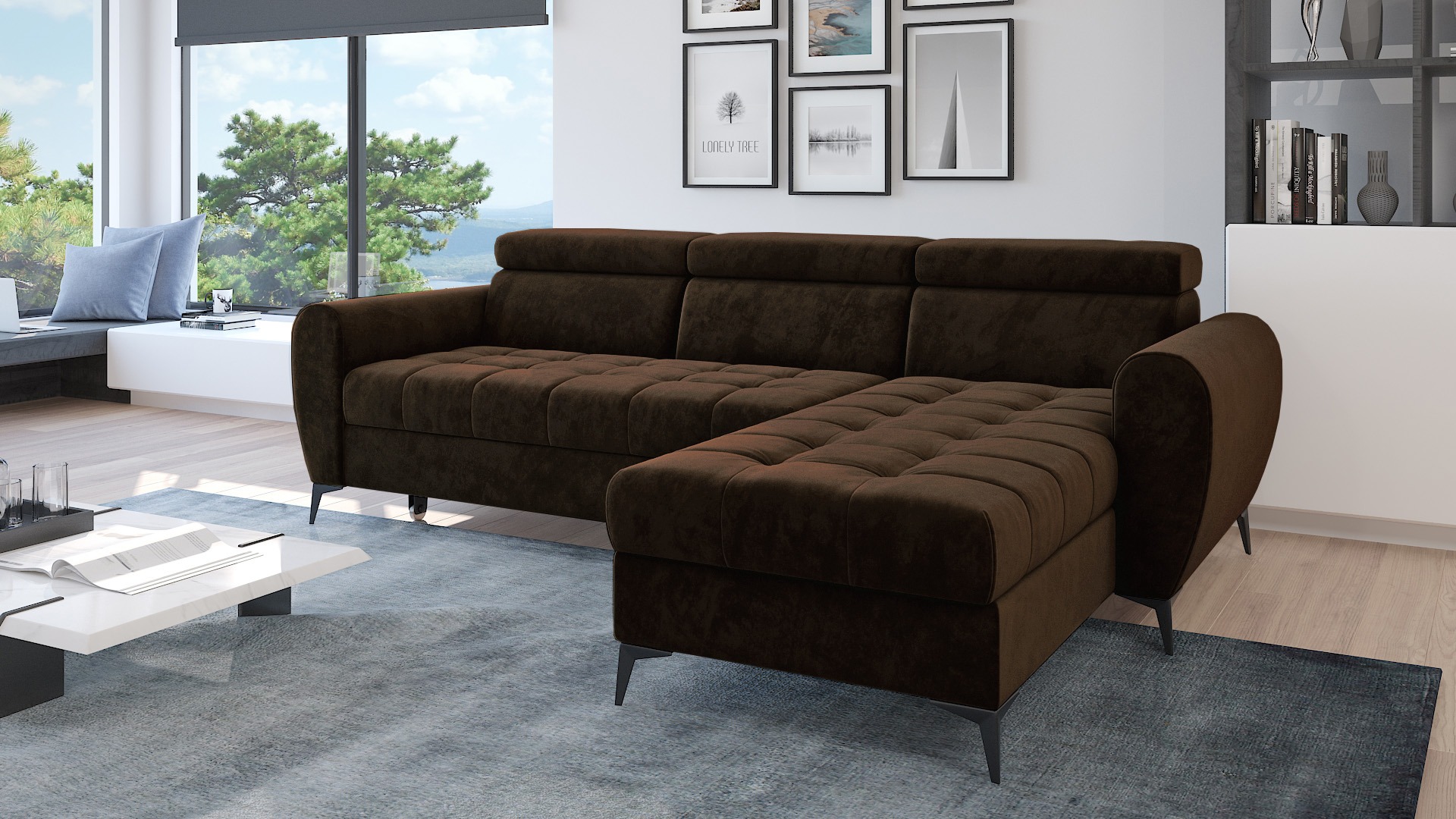 Co ważne, welurowa tkanina Monolith jest przyjazna zwierzętom i środowisku. Posiada właściwości utrudniające wchłanianie płynów. Dzięki temu każde rozlanie można łatwo usunąć za pomocą wody. Głęboki brąz narożnika Bjorn dodaje wnętrzu elegancji. Tapicerowany tył mebla pozwala na ustawienie go w dowolnym miejscu, nawet na środku pokoju. Staje się on sercem domowego życia. To idealne miejsce na spotkania z bliskimi lub spokojne chwile relaksu.