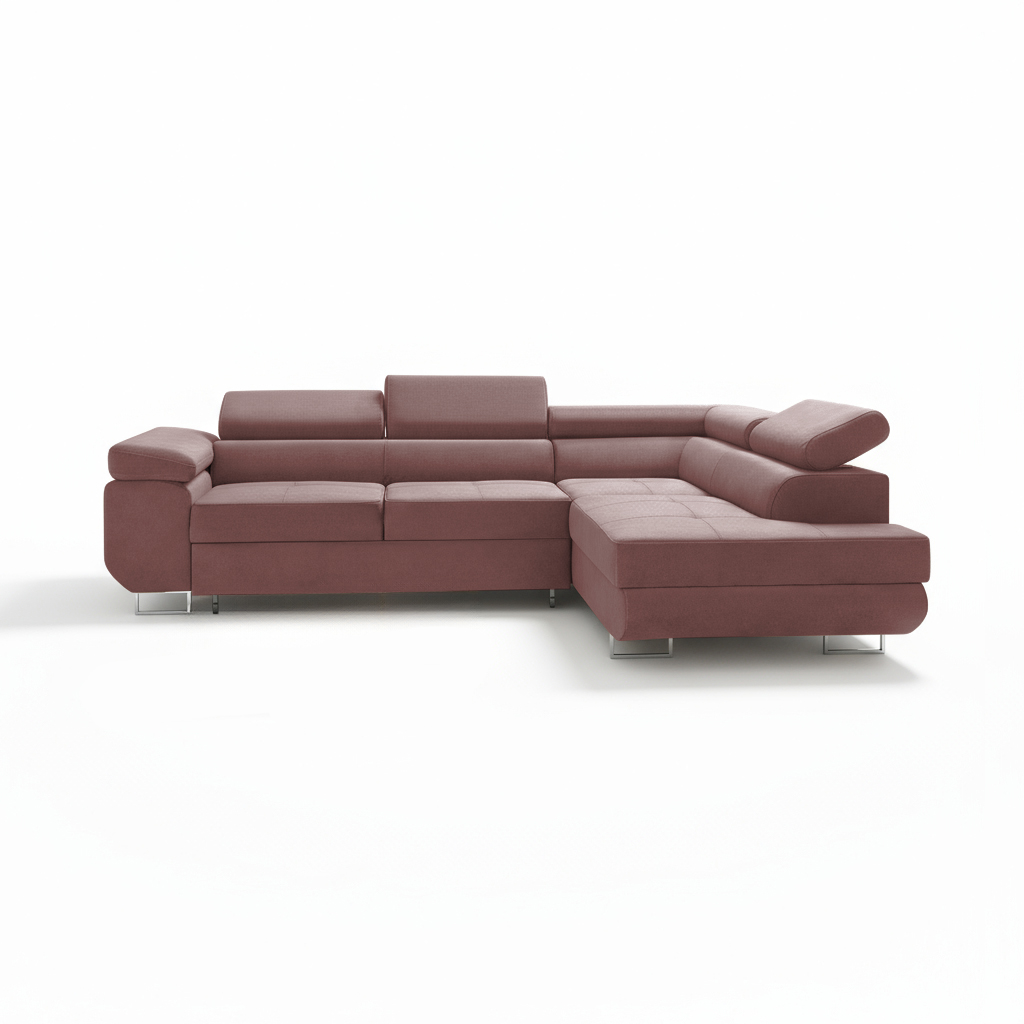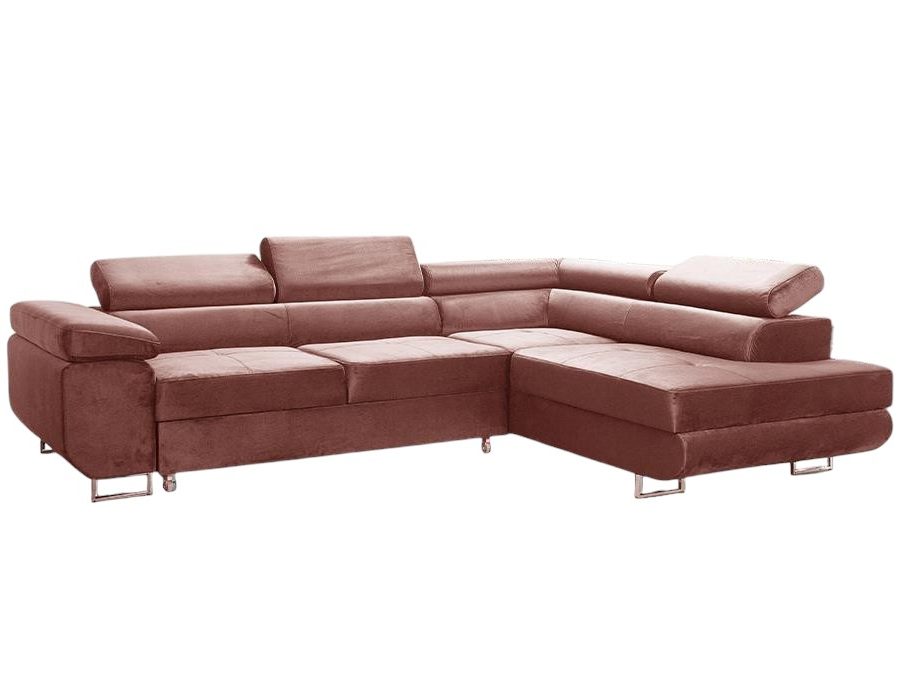 Pudroworóżowy narożnik Avesta został stworzony z myślą o wyzwaniach codziennego życia. Pokryto go welurową tkaniną Monolith o wyjątkowych właściwościach. Materiał utrudnia wchłanianie rozlanych płynów. Jest też przyjazny zwierzętom, co ułatwia usuwanie sierści i zwiększa odporność na zadrapania. Narożnik posiada również funkcję spania. Rozkładanie za pomocą automatu Delfin jest szybkie i intuicyjne. Duży pojemnik w otomanie pozwala dyskretnie przechować pościel lub koce.