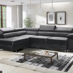 Narożnik wyposażono w intuicyjną funkcję spania. Jej rozkładanie za pomocą automatu Delfin pozwala szybko przygotować wygodne miejsce dla gości. Z kolei praktyczny pojemnik na pościel ułatwia utrzymanie porządku w pokoju dziennym. Co ważne, całość pokrywa welurowa tkanina Monolith, która jest niezwykle przyjemna w dotyku. Jej właściwości hydrofobowe oraz przyjazność zwierzętom sprawiają, że grafitowy narożnik Avesta staje się centrum życia rodzinnego bez obaw o codzienne użytkowanie.