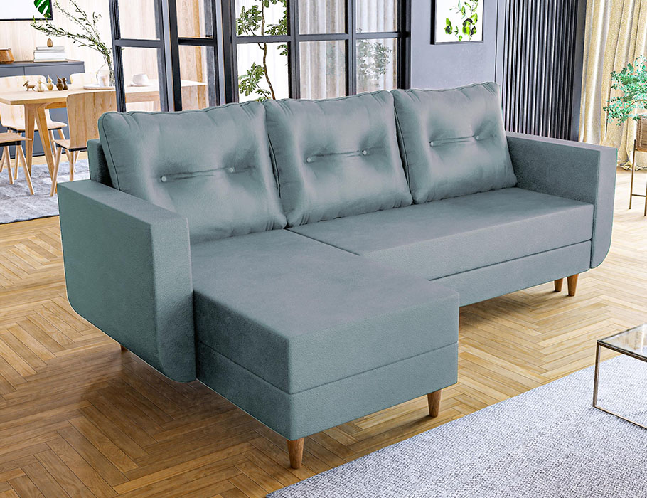 Mebel oferuje także praktyczne rozwiązania na co dzień. Posiada intuicyjną w obsłudze funkcję spania typu DL. Dzięki niej w kilka chwil można przygotować wygodne miejsce do spania dla gości. Pod siedziskiem ukryto z kolei pojemny schowek na pościel. Pozwala on utrzymać porządek i dyskretnie przechować dodatkowe koce lub poduszki.
