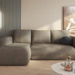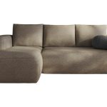 Dzięki tapicerowanemu tyłowi mebel może stanąć w dowolnym miejscu, nawet na środku salonu. W ten sposób staje się centralnym punktem aranżacji. Jasnobrązowy narożnik Lambi ociepla przestrzeń i sprawia, że staje się ona ulubionym miejscem spotkań domowników. Jego przyjemna w dotyku tkanina i komfortowa forma tworzą idealne warunki do budowania wspomnień każdego dnia.