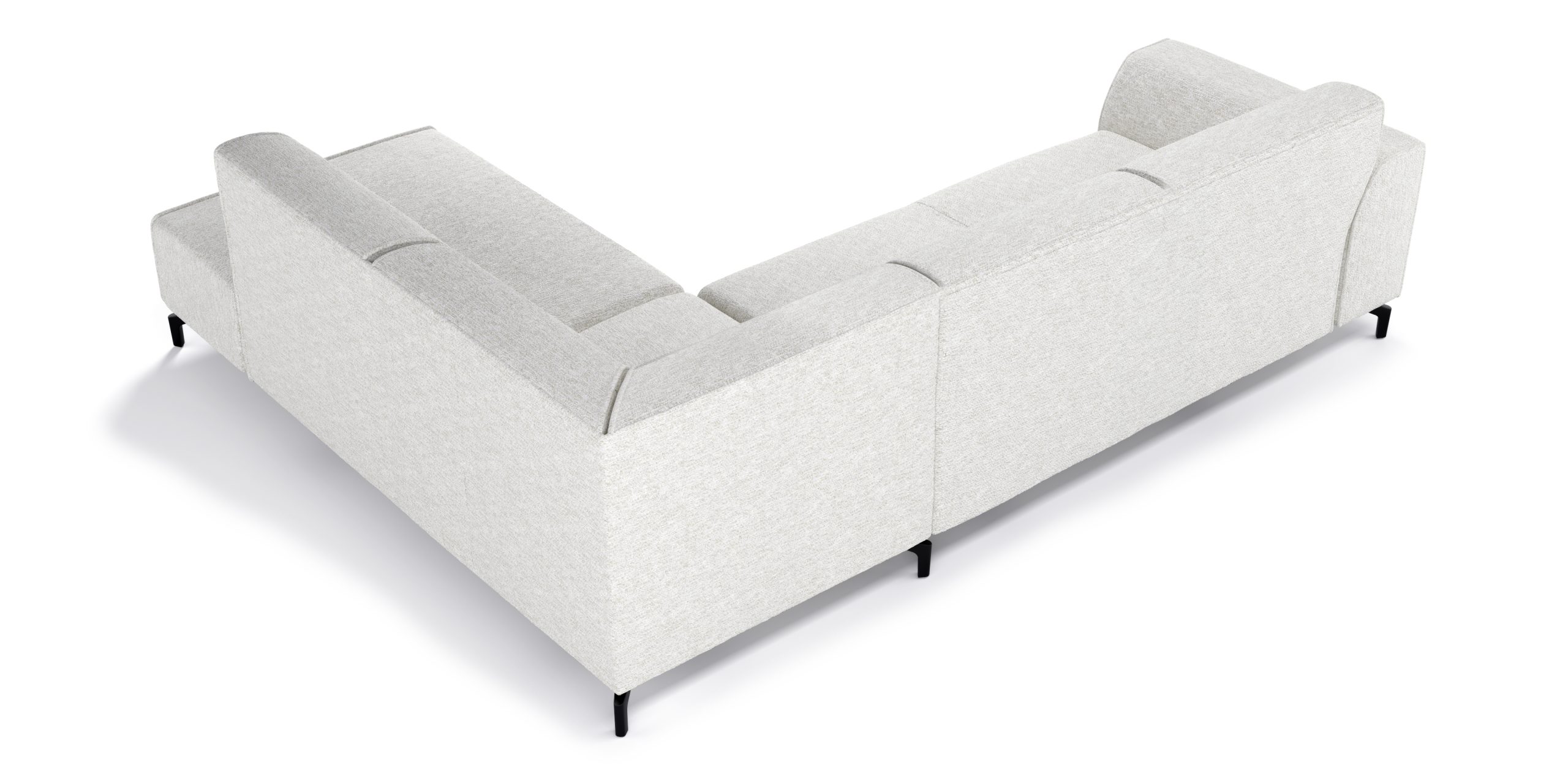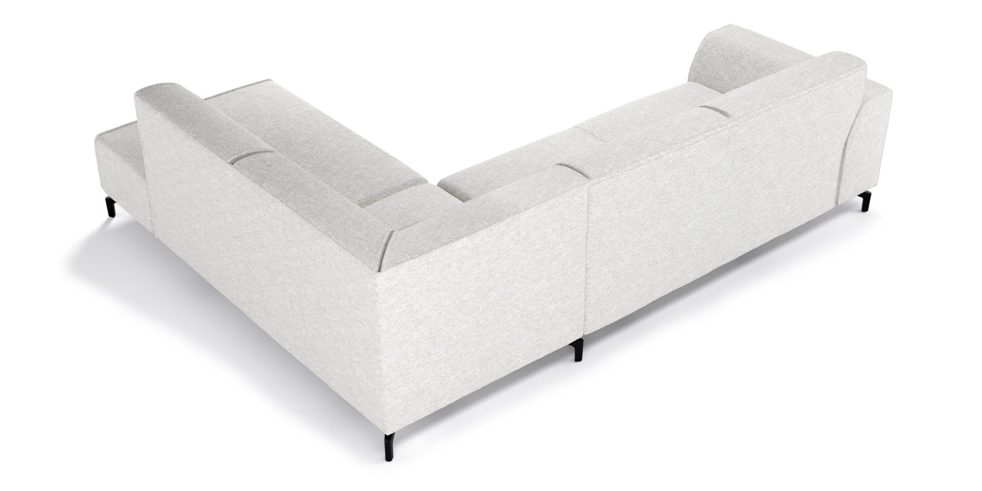 zapewnia przestrzeń do wypoczynku i relaksu dla całej rodziny. Jego wyrafinowany design podkreślają wysokie metalowe nóżki, które nadają mu lekkości i nowoczesnego charakteru, a także ułatwiają sprzątanie pod meblem.