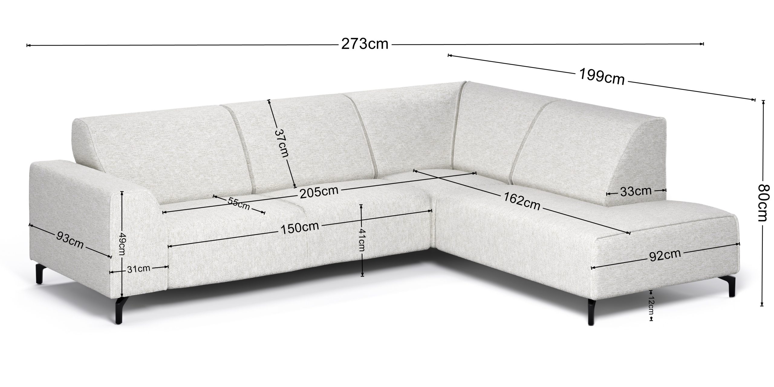Wykonany z dbałością o każdy detal, narożnik Eternis jest tapicerowany wysokiej jakości tkaniną szenil, która nie tylko zachwyca wyglądem, ale także jest odporna na ścieranie, co gwarantuje długotrwałą trwałość mebla. Dzięki zastosowaniu sprężyn, narożnik oferuje optymalne wsparcie i komfort siedzenia, co czyni go idealnym miejscem do wypoczynku po długim dniu.