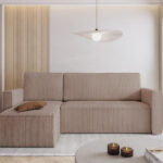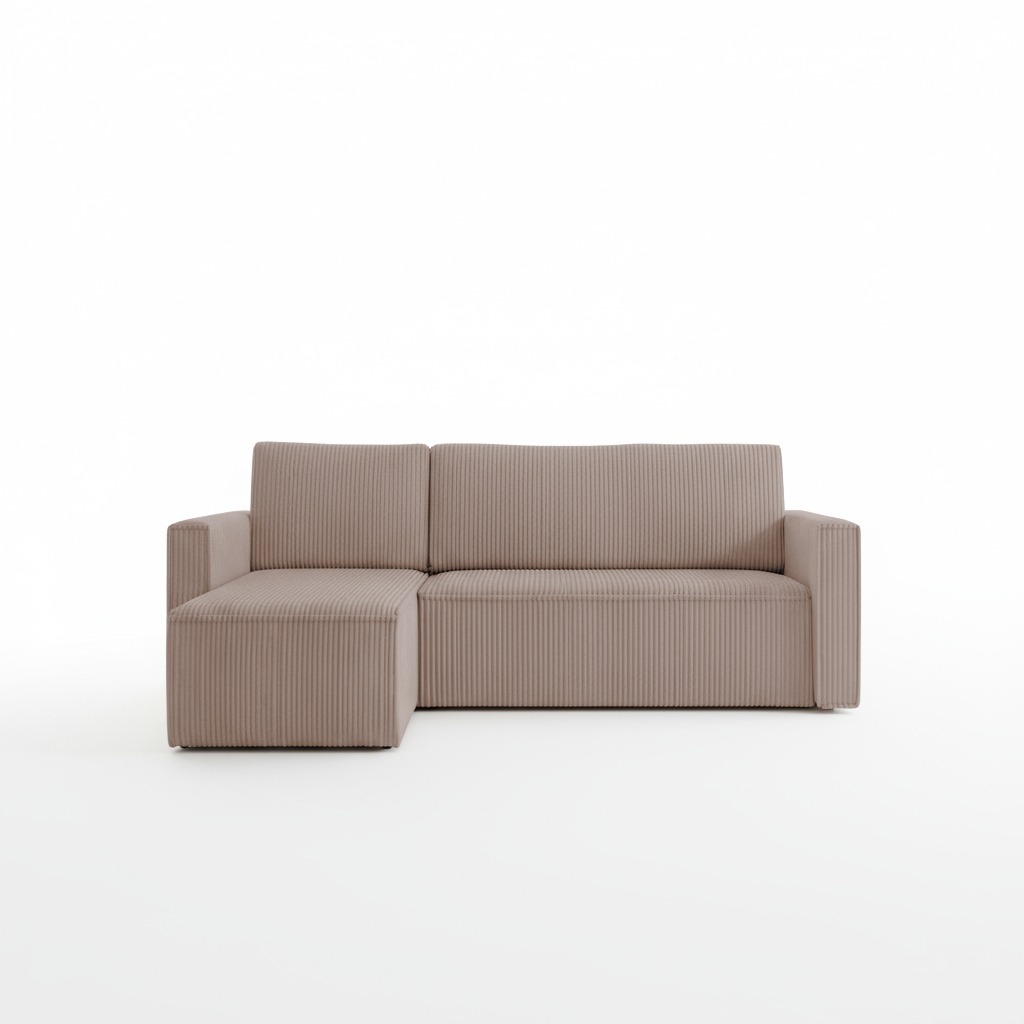 Narożnik MIMIR jest także niezwykle funkcjonalny. Prosty system rozkładania pozwala w mgnieniu oka zamienić go w komfortowe miejsce do spania dla gości. Z kolei pojemny schowek na pościel pomaga utrzymać porządek w salonie. Można w nim schować dodatkowe koce lub poduszki. Sztruksowa tapicerka została stworzona z myślą o codziennym życiu. Jest przyjazna zwierzętom, a jej czyszczenie jest bardzo proste. Co więcej, specjalna powłoka utrudnia wchłanianie płynów. W ten sposób beżowy narożnik MIMIR pozostaje piękny na długo, nawet przy intensywnym użytkowaniu.