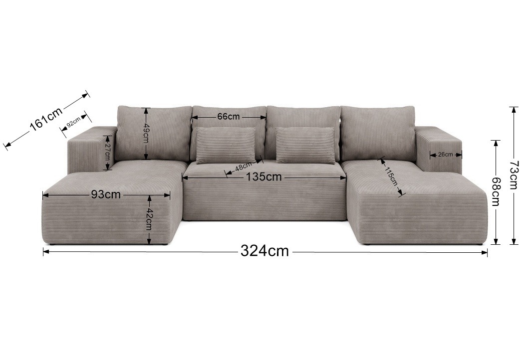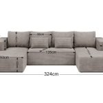 Sześć dużych poduszek oparciowych dopełnia całości, zapraszając do popołudniowej drzemki lub wieczornego seansu filmowego. Narożnik Stripes U wnosi do domu poczucie przytulności i funkcjonalnej elegancji, stając się ulubionym miejscem wypoczynku dla całej rodziny.