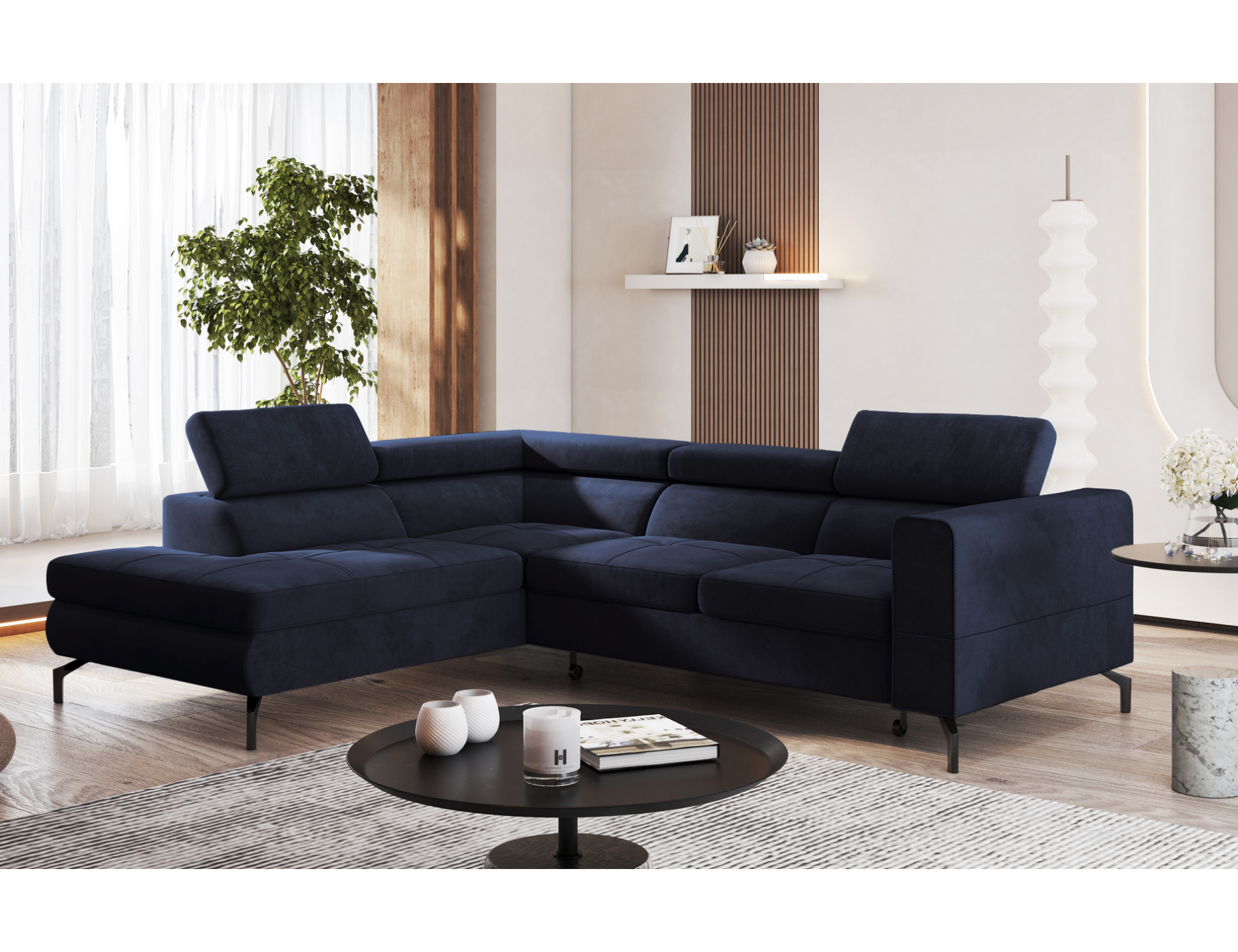 Model ten jest także wyjątkowo funkcjonalny. W razie potrzeby można go łatwo zamienić w wygodne łóżko dla gości. Rozkładanie za pomocą automatu Delfin jest szybkie i nie wymaga wysiłku. Duży pojemnik na pościel pomaga utrzymać porządek w salonie. Można w nim schować dodatkowe koce, poduszki lub sezonowe tekstylia.