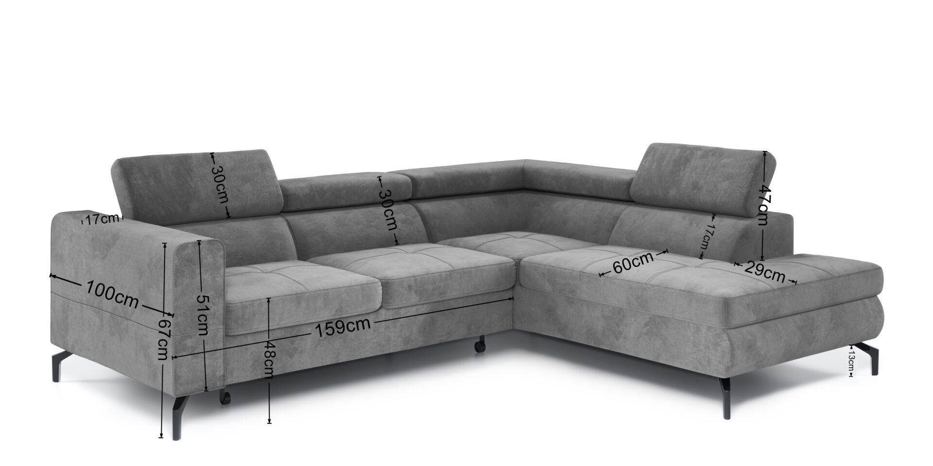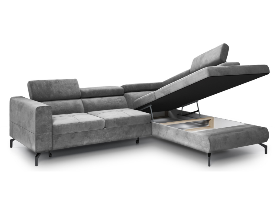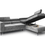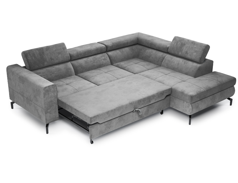 Narożnik potrafi także dostosować się do potrzeb gości i domowników. Intuicyjne rozkładanie za pomocą automatu Delfin szybko zmienia go w wygodne miejsce do spania. Model posiada również praktyczny pojemnik na pościel. Ułatwia on utrzymanie porządku w salonie. Welurowa tkanina Monolith jest niezwykle przyjemna w dotyku. Posiada właściwości utrudniające wchłanianie cieczy oraz jest przyjazna zwierzętom. Dlatego rozlana kawa czy obecność czworonoga nie będą już powodem do zmartwień.
