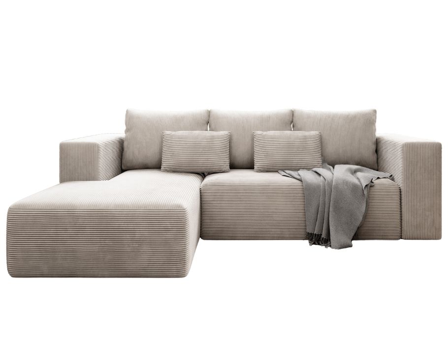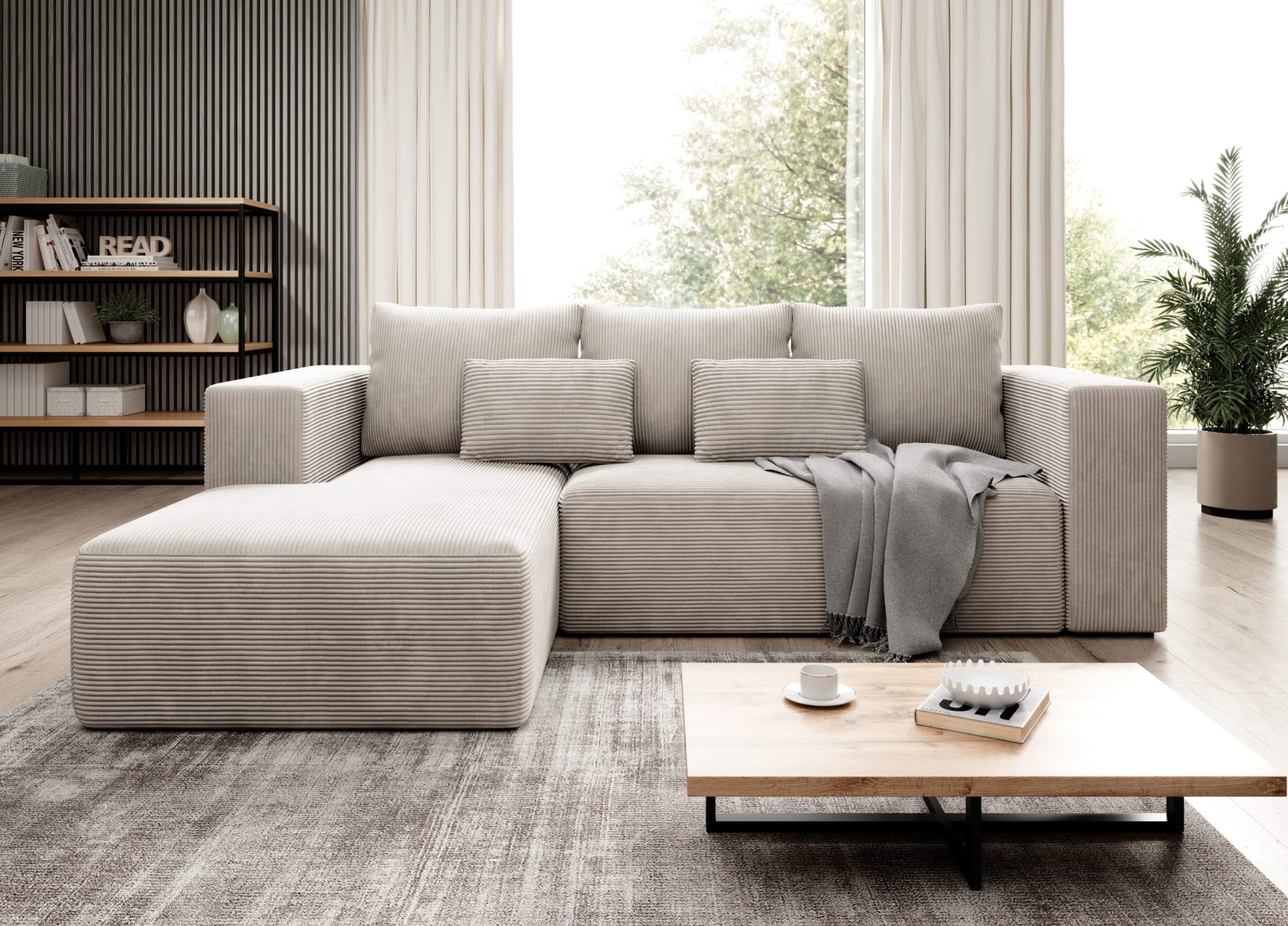 Narożnik wyposażono w praktyczne funkcje. Rozkładanie za pomocą automatu DL jest proste i nie wymaga wysiłku. W ten sposób mebel szybko zmienia się w wygodne miejsce do spania dla gości. Pojemny schowek na pościel pomaga z kolei w utrzymaniu porządku. Można w nim przechowywać dodatkowe koce, poduszki lub tekstylia sezonowe.