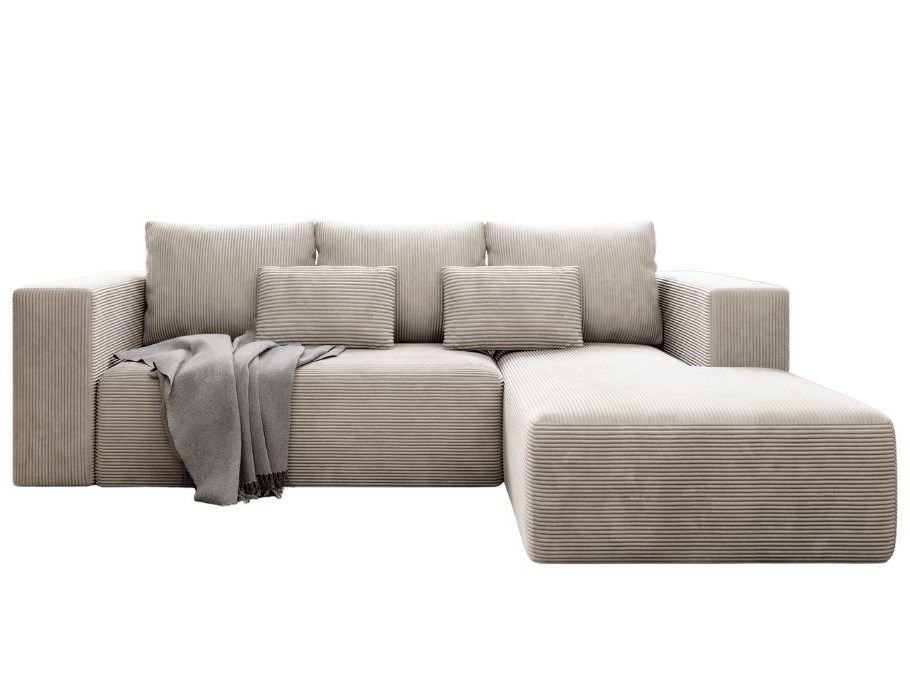 Narożnik został stworzony z myślą o codziennym komforcie. Wygodne siedzisko wypełniono sprężynami falistymi i elastyczną pianką. Zapewnia to idealne podparcie podczas wieczornego relaksu z książką lub rodzinnych spotkań. W razie potrzeby mebel można łatwo zmienić w wygodne łóżko. Rozkładanie za pomocą automatu DL jest szybkie i nie wymaga siły. Dzięki temu niespodziewani goście zawsze znajdą komfortowe miejsce do snu. Dodatkowy pojemnik pomaga z kolei utrzymać porządek, przechowując pościel lub koce.