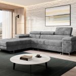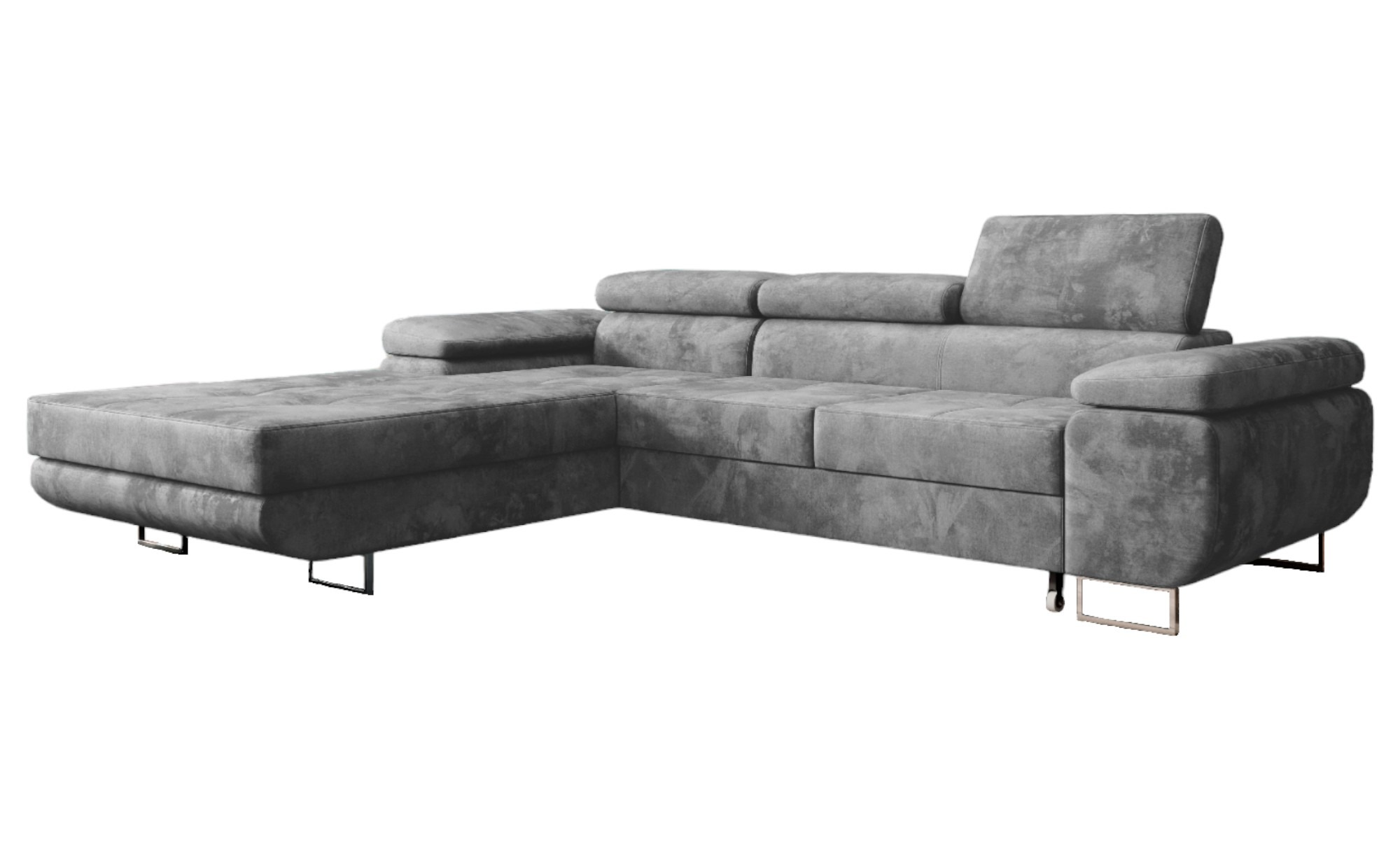 Jego uniwersalna forma w kształcie litery L świetnie odnajdzie się w wielu aranżacjach. Dlatego mebel pasuje zarówno do wnętrz klasycznych, jak i tych o bardziej nowoczesnym charakterze. Szlachetny szary kolor tapicerki wprowadza do salonu atmosferę spokoju i elegancji. Stanowi subtelne tło dla wyrazistych dodatków lub współgra z neutralną paletą barw. Wysokie, chromowane nóżki dodają konstrukcji wizualnej lekkości. Co ważne, tapicerowany tył pozwala ustawić narożnik w dowolnym miejscu, nawet na środku pokoju.