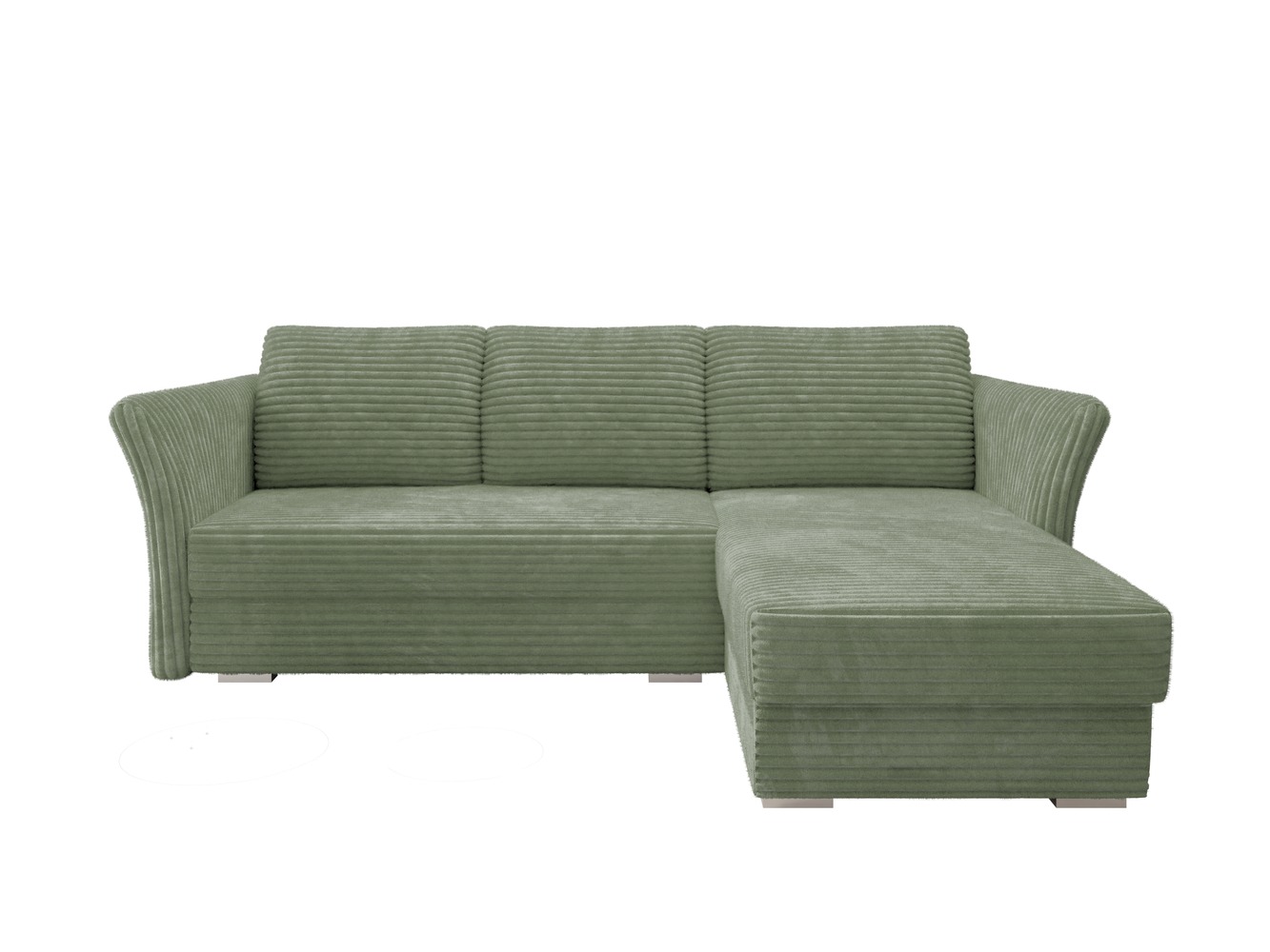 Narożnik wyposażono w funkcję spania. Rozkładanie za pomocą automatu DL jest szybkie i nie wymaga wysiłku. Dzięki temu salon w kilka chwil zamienia się w komfortową przestrzeń dla gości. Z kolei praktyczny pojemnik na pościel pomaga utrzymać porządek. Można w nim przechować kołdrę, poduszki lub dodatkowe koce.