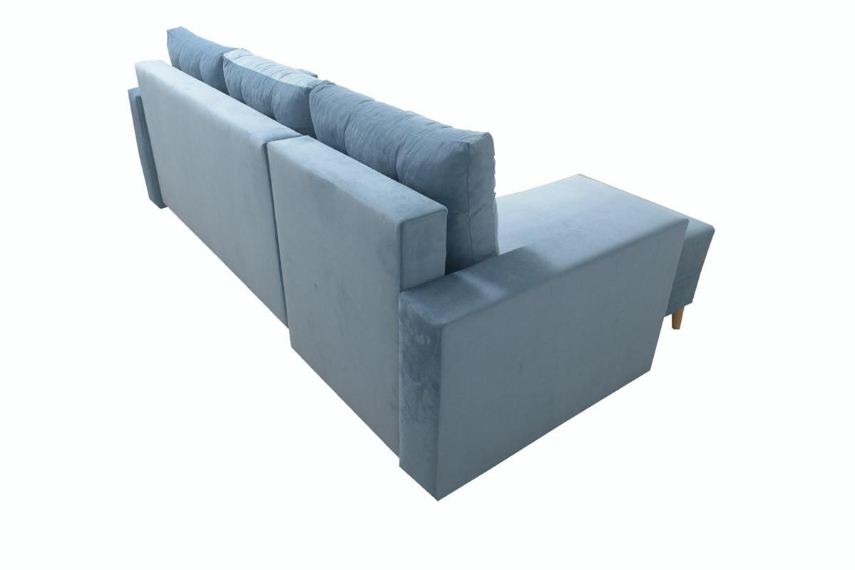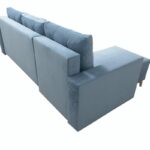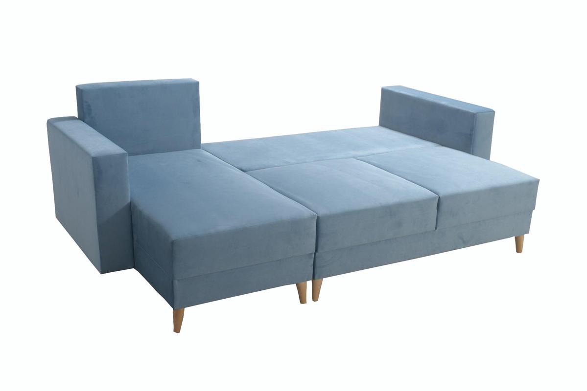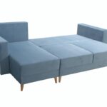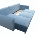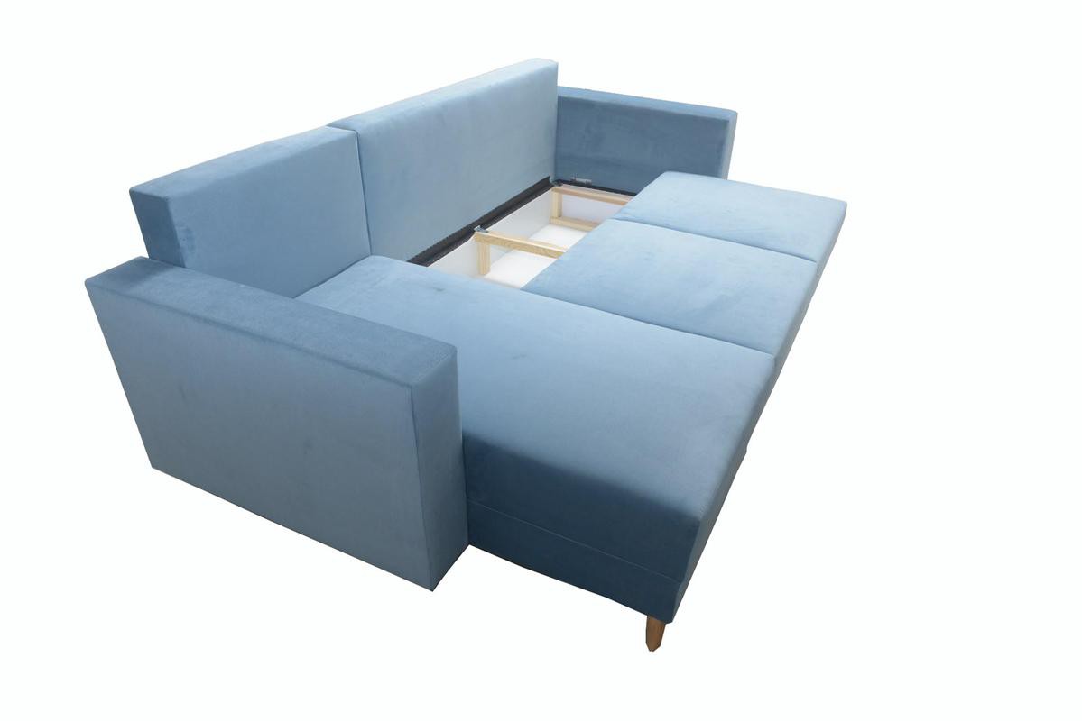 Narożnik oferuje również wygodną funkcję spania. Rozkładanie za pomocą automatu DL jest szybkie i nie wymaga wysiłku. W ten sposób zyskujemy dużą powierzchnię do odpoczynku dla niespodziewanych gości. Praktyczny pojemnik pod siedziskiem pozwala przechować pościel, koce lub poduszki. Pomaga to utrzymać porządek w salonie każdego dnia.