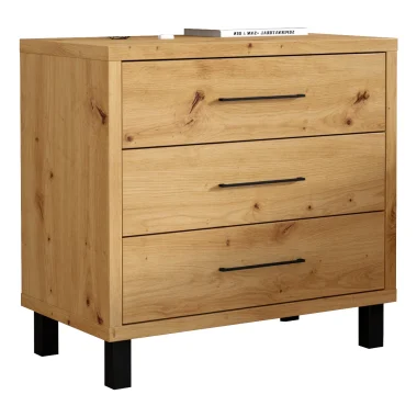 Czarny grafit to intensywność i elegancja w jednym. Mocny akcent dekoracyjny o efektywnym działaniu wizualnym podkreśla nowoczesność przestrzeni. Czarne komody – klasyczne i ponadczasowe – kolor ten nadaje dramatyzmu oraz luksusu każdemu wnętrzu. Jest symbolem wyrafinowanego stylu, który nigdy nie wychodzi z mody. Czarna komoda sprawdzi się świetnie w zestawieniu z pikowanym narożnikiem. Dąb artisan to połączenie naturalnego usłojenia drewna z nowoczesnym designem. Idealny wybór dla osób szukających niebanalnych rozwiązań we wnętrzarstwie.