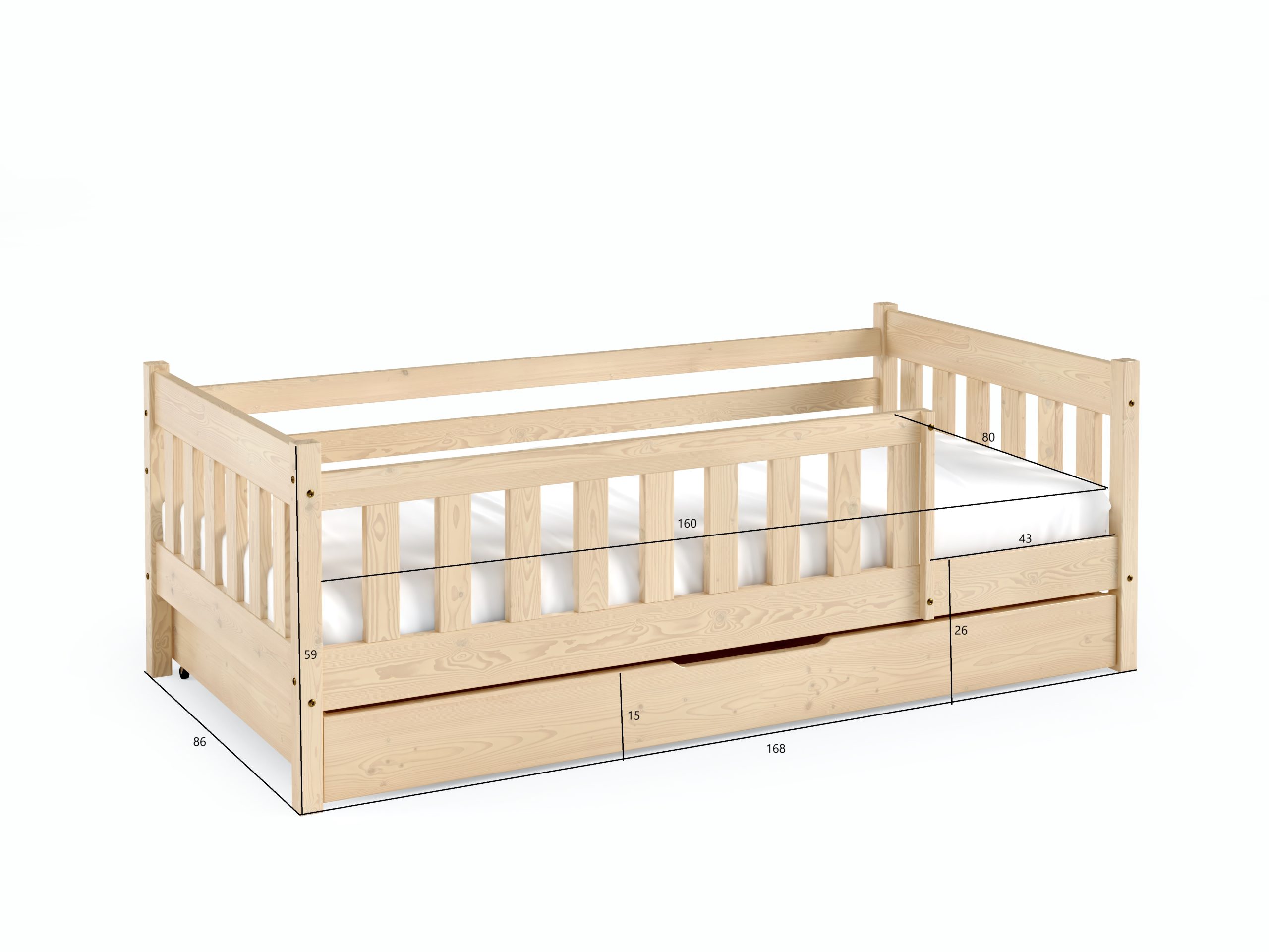 z szufladą – idealną do przechowywania pościeli, zabawek i książek,