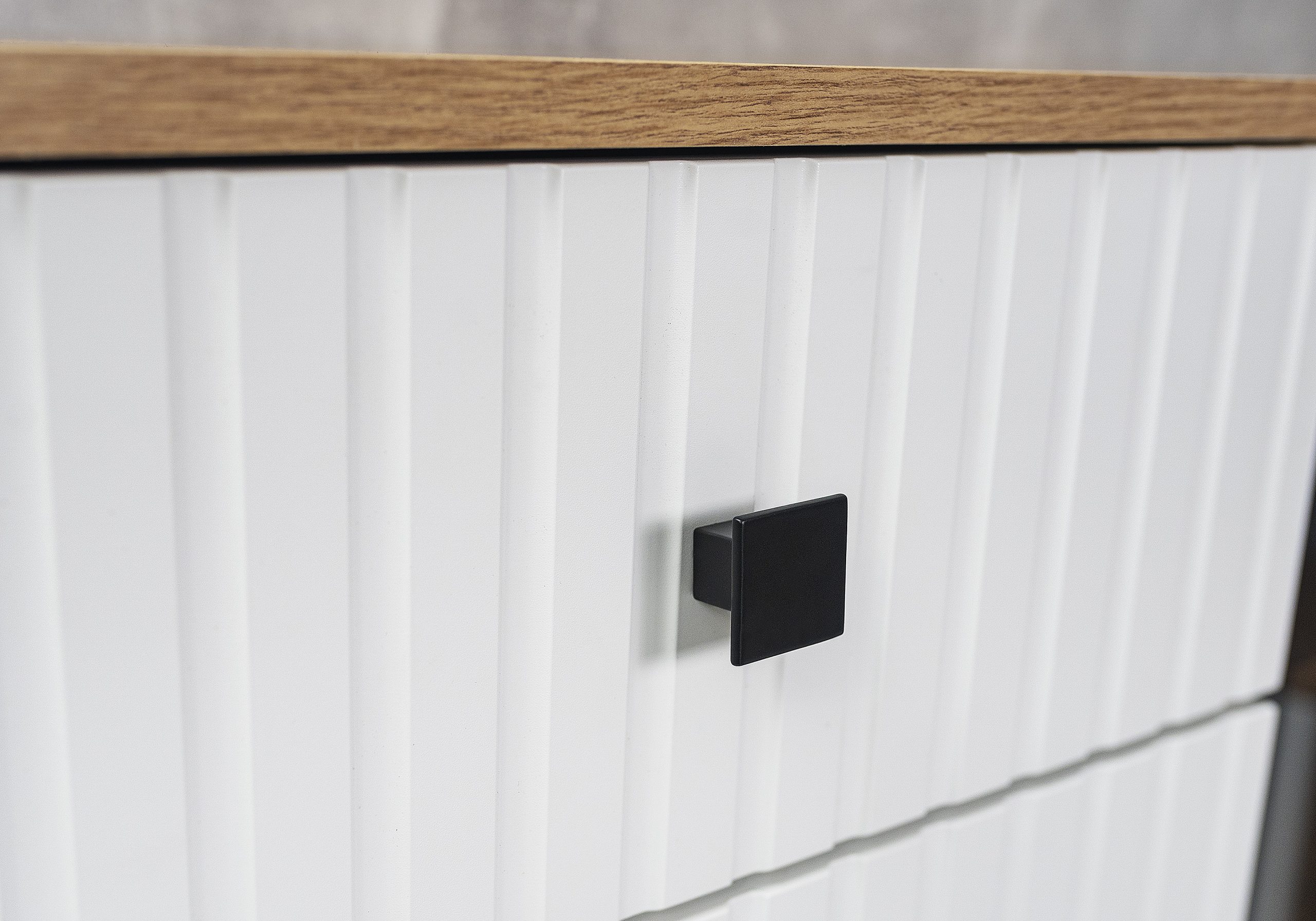 1. Lamele: Meblościanka Salsa została zaprojektowana z wykorzystaniem eleganckich, pionowych lamelek, które nadają jej lekkości i nowoczesności. Dzięki nim cała konstrukcja prezentuje się bardzo stylowo i efektownie.