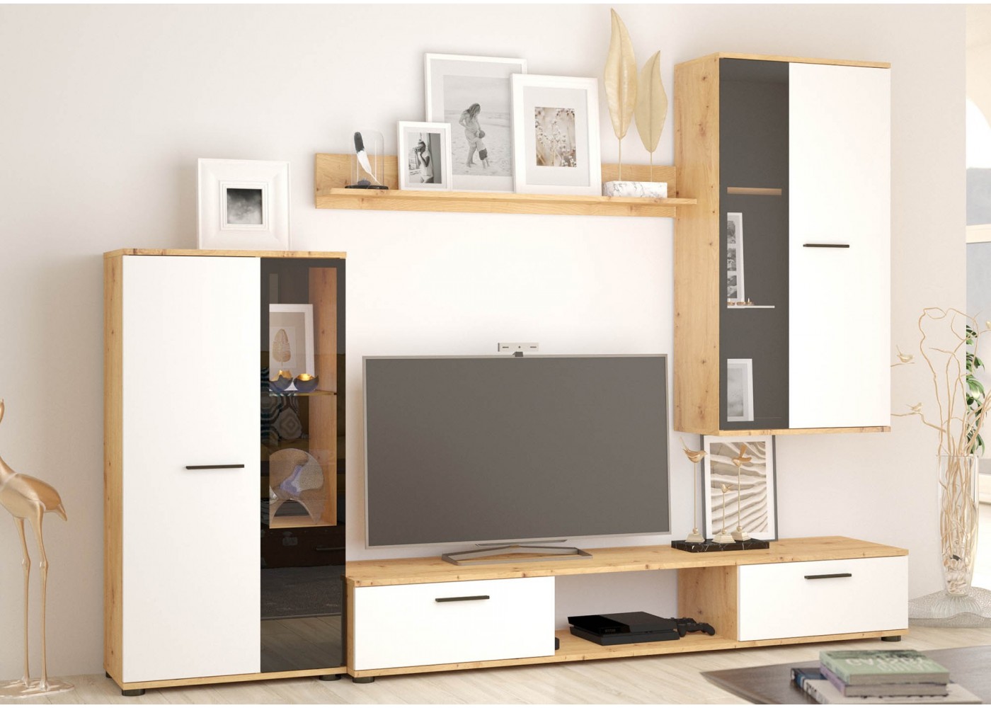 Nowoczesna meblościanka Salsa dąb artisan z białym
