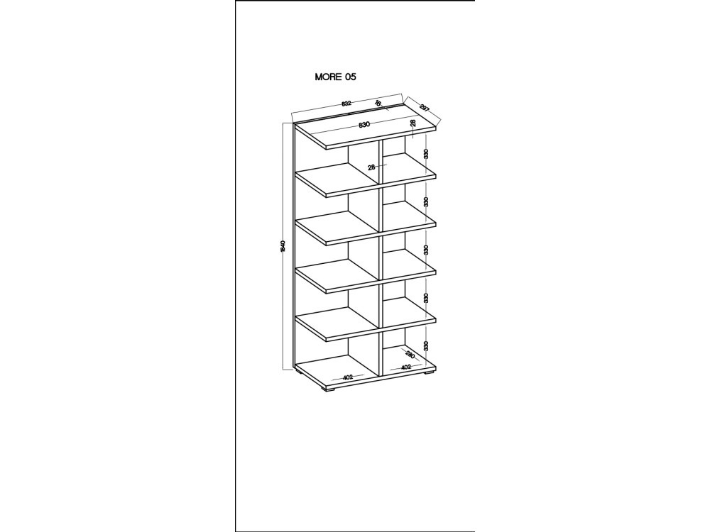 Regał MORE 1+5+1 to imponujący mebel o wymiarach: