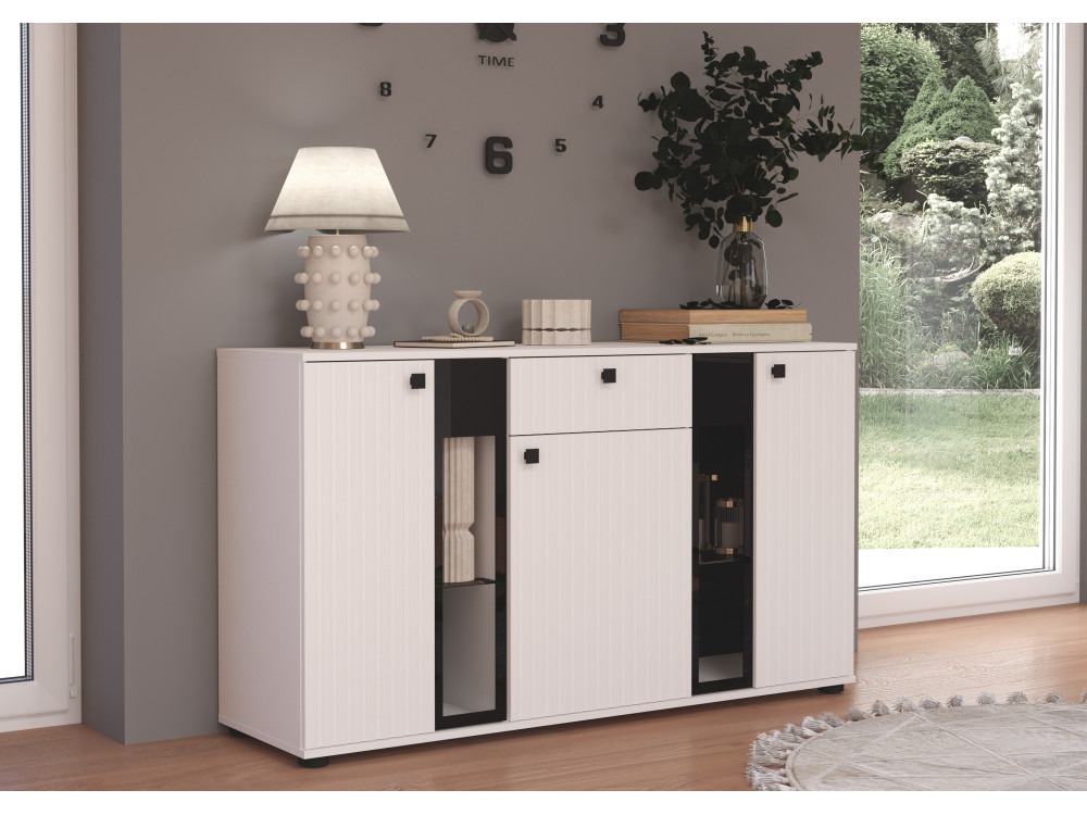 Komoda Salsa trzydrzwiowa z szufladą biała z lamelami
