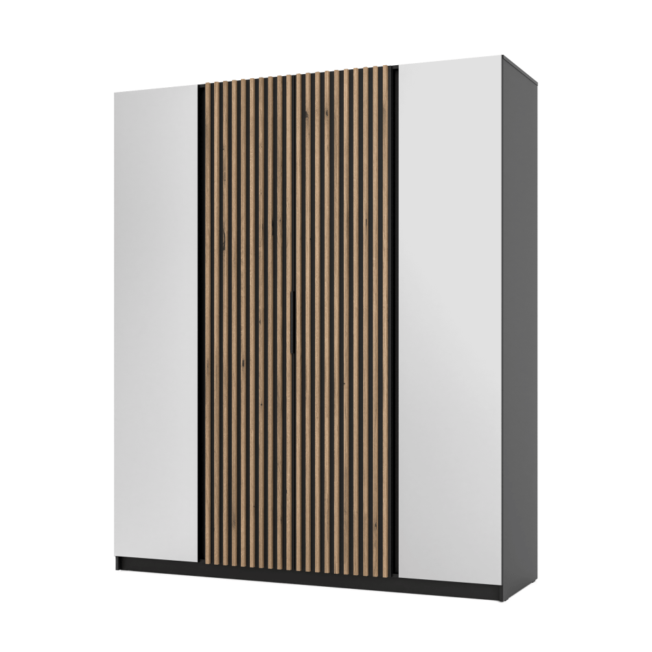 Szafa Kaja 200 cm z lustrem dąb evoke z czarnymi lamelami