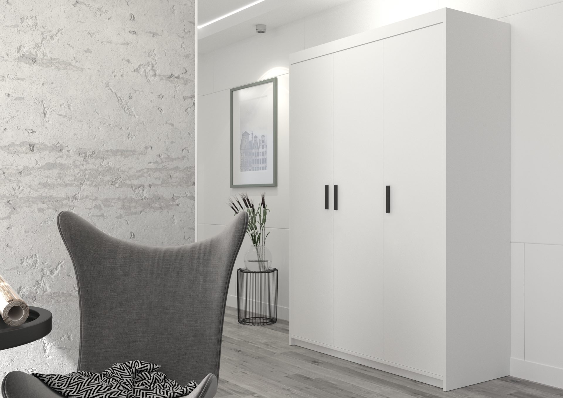 Szafa ELENA jest bardzo przestronna, co umożliwia przechowywanie dużej ilości ubrań, butów oraz innych akcesoriów. Wysokość mebla wynosi 190 cm, szerokość 133 cm, a głębokość 53 cm, co czyni ją idealnym rozwiązaniem nawet do mniejszych pomieszczeń, gdzie liczy się każdy centymetr przestrzeni. Trzydrzwiowa konstrukcja szafy zapewnia łatwy dostęp do całej zawartości, co ułatwia codzienne korzystanie.