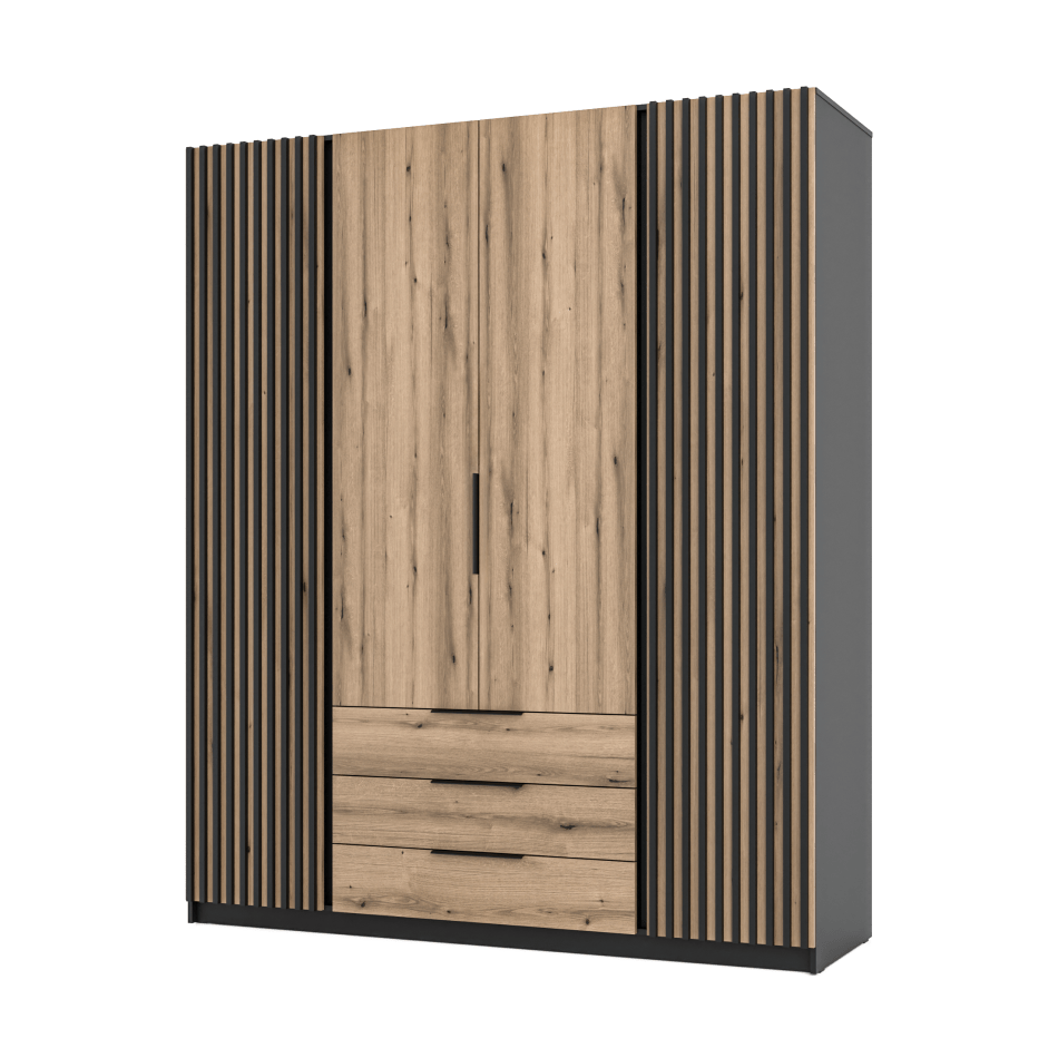 Szafa Kaja 200 cm z szufladami dąb evoke z czarnymi lamelami