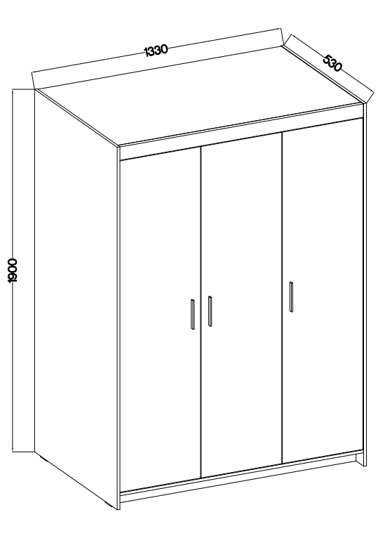 Szafa ELENA jest bardzo przestronna, co umożliwia przechowywanie dużej ilości ubrań, butów oraz innych akcesoriów. Wysokość mebla wynosi 190 cm, szerokość 133 cm, a głębokość 53 cm, co czyni ją idealnym rozwiązaniem nawet do mniejszych pomieszczeń, gdzie liczy się każdy centymetr przestrzeni. Trzydrzwiowa konstrukcja szafy zapewnia łatwy dostęp do całej zawartości, co ułatwia codzienne korzystanie.
