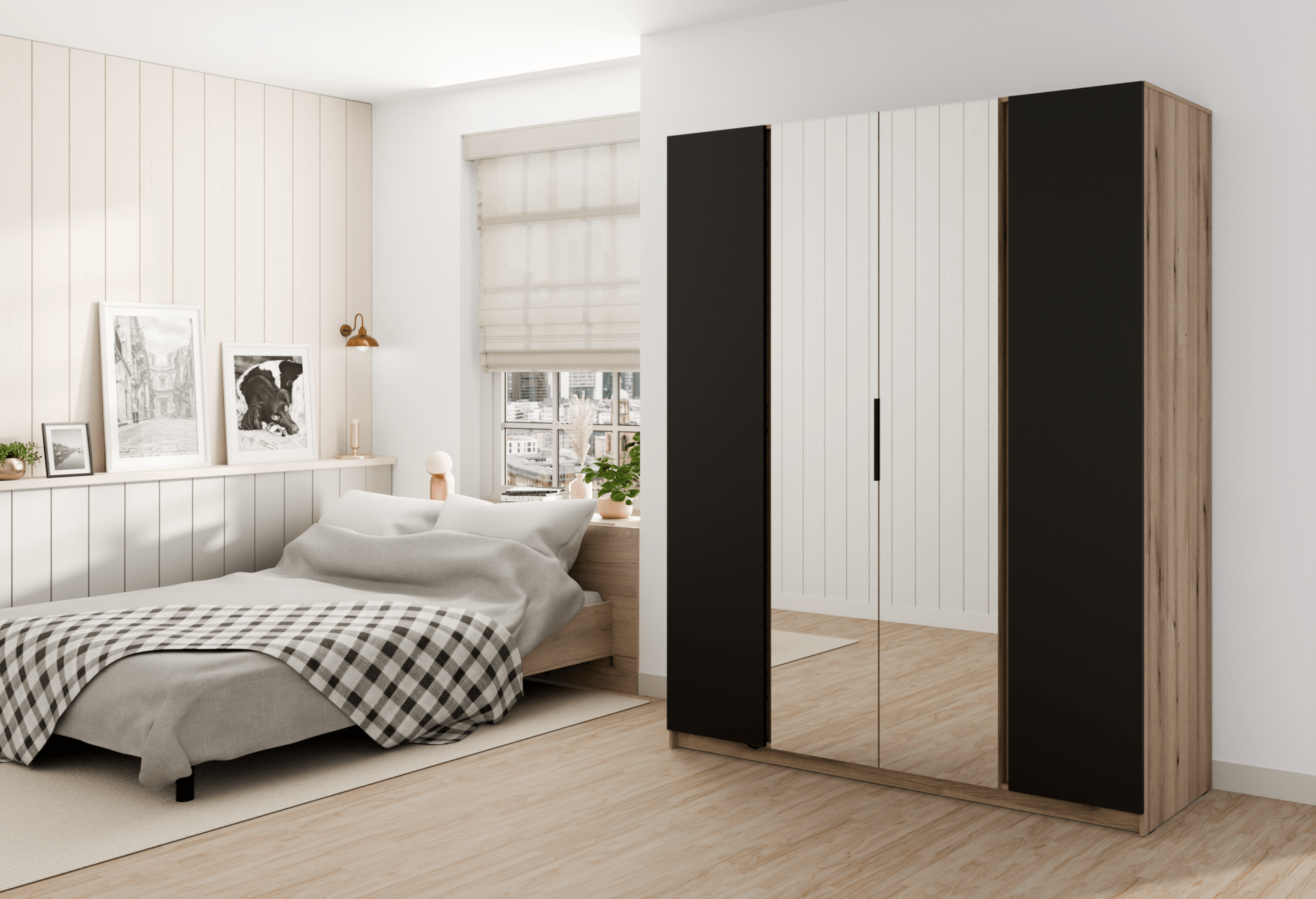 Jednym z największych atutów szafy Kaja jest jej wszechstronność. Szeroka gama kombinacji kolorystycznych pozwala dopasować ją do każdego wystroju wnętrza, dodając imponujący akcent stylistyczny. Niezależnie od tego, czy preferujesz klasyczne, stonowane barwy, czy bardziej nowoczesne i wyraziste odcienie, z pewnością znajdziesz coś dla siebie. Dzięki temu szafa Kaja stanie się nie tylko praktycznym elementem wyposażenia, ale również stylowym dodatkiem, który podkreśli charakter Twojego mieszkania.