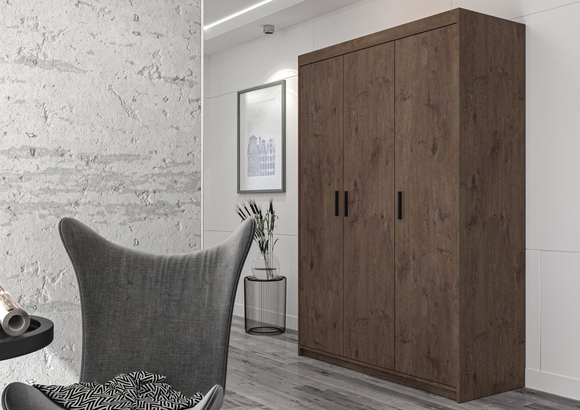 Szafa ELENA to doskonały wybór dla osób ceniących sobie funkcjonalność, elegancję i nowoczesny design. Jest to mebel wolnostojący, który dzięki starannemu wykonaniu i estetycznemu wyglądowi idealnie komponuje się z różnymi stylami wnętrz, zarówno klasycznymi, jak i nowoczesnymi. Szafa ELENA wyróżnia się trzema drzwiami, co zapewnia wygodny dostęp do wnętrza oraz umożliwia efektywne organizowanie przestrzeni.