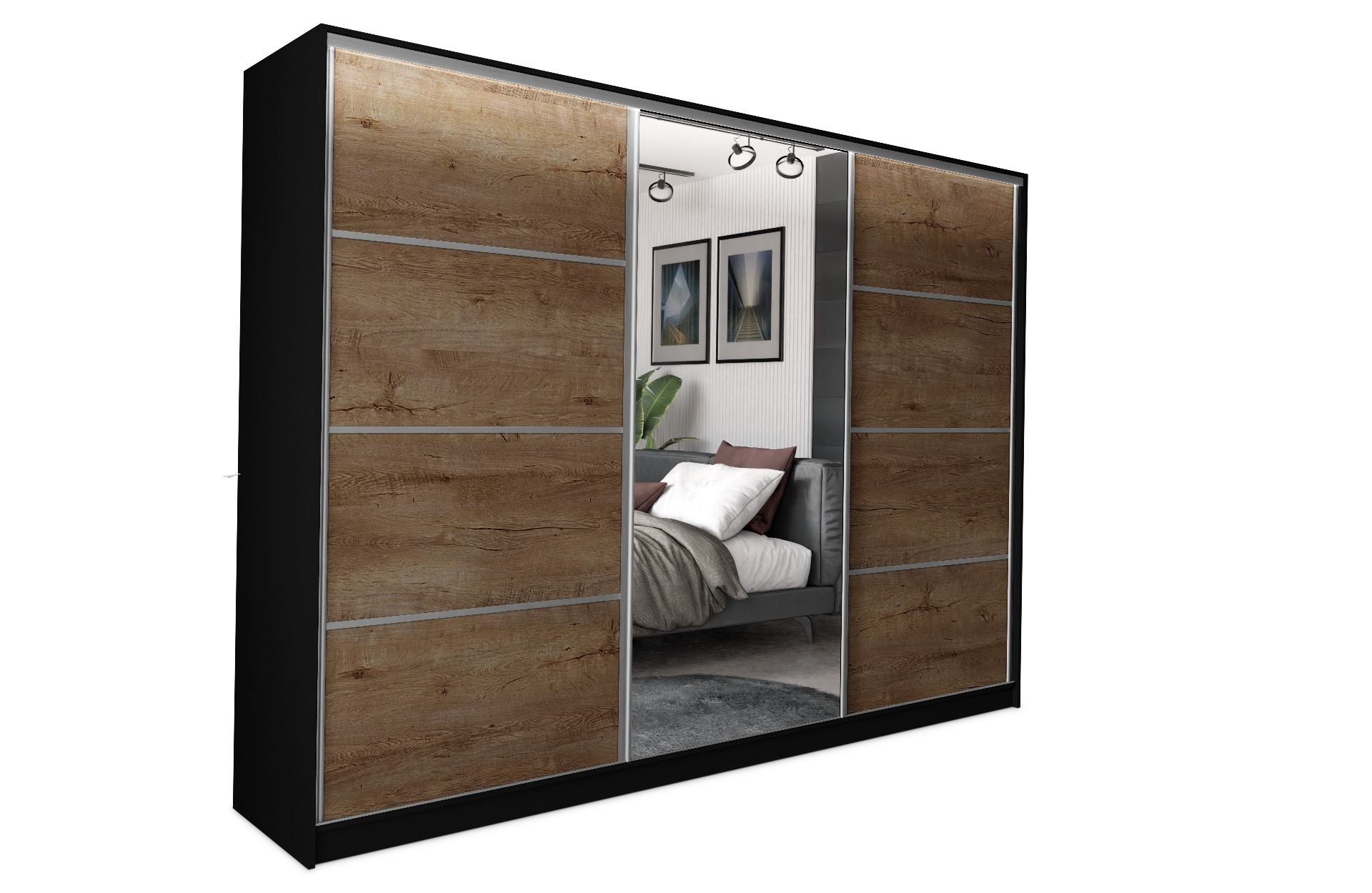 Ciesz się elegancją i praktycznością dzięki naszej dużej szafie z lustrem do sypialni. Wykonana z wysokiej jakości materiałów, ta czarna szafa gwarantuje trwałość i wytrzymałość na wiele lat. Jej nowoczesne wykończenie dodaje wnętrzu szyku, a lustro nadaje przestronności oraz optycznie powiększa pomieszczenie, czyniąc je bardziej przyjaznym.