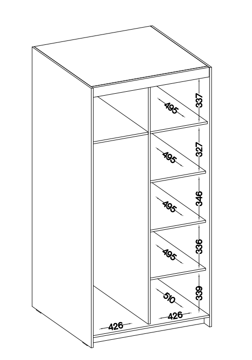 Szafa Elena jest dwudrzwiowa, co dodaje jej elegancji i klasycznego uroku. Dwudrzwiowy design zapewnia wygodny dostęp do całej zawartości szafy, umożliwiając szybkie i łatwe znalezienie potrzebnych rzeczy. Wnętrze szafy zostało zaprojektowane z myślą o maksymalnej funkcjonalności – znajdziesz tam liczne półki, które pomogą w przechowywaniu złożonych ubrań, drążki na wieszaki, idealne do sukienek, koszul i marynarek.