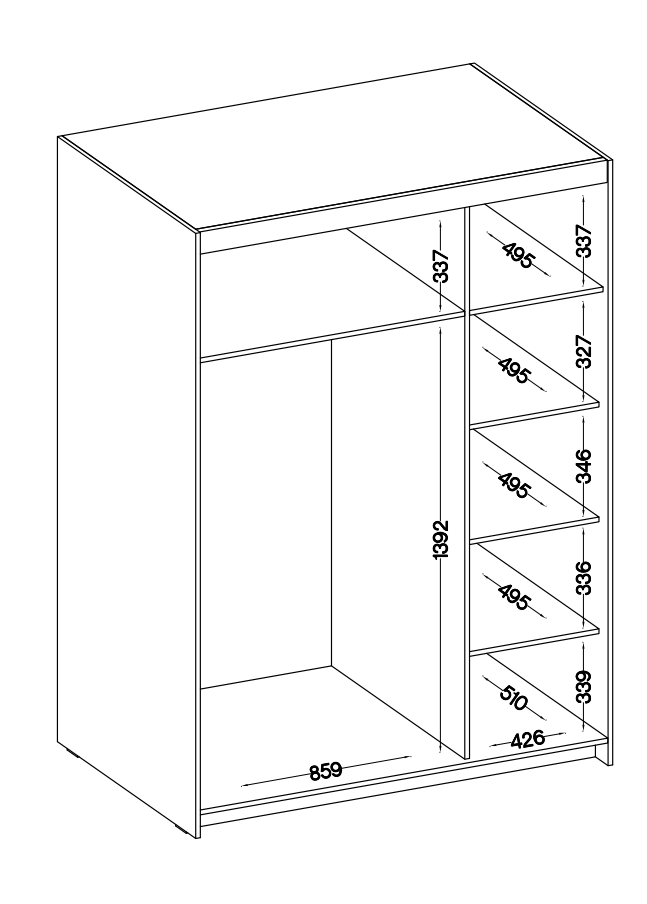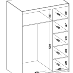 Wnętrze szafy ELENA zostało zaprojektowane z myślą o maksymalnej funkcjonalności. Posiada liczne półki oraz drążki na ubrania, które pozwalają na przechowywanie rzeczy w uporządkowany sposób. Dzięki temu wszystko ma swoje miejsce, a utrzymanie porządku staje się prostsze.
