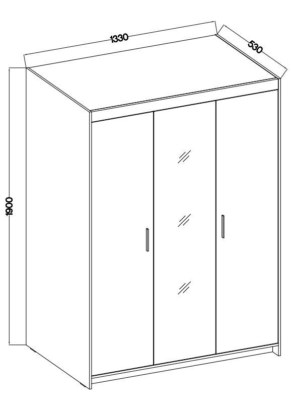 Szafa ELENA jest bardzo przestronna, co umożliwia przechowywanie dużej ilości ubrań, butów oraz innych akcesoriów. Wysokość mebla wynosi 190 cm, szerokość 133 cm, a głębokość 53 cm, co czyni ją idealnym rozwiązaniem nawet do mniejszych pomieszczeń, gdzie liczy się każdy centymetr przestrzeni. Trzydrzwiowa konstrukcja szafy zapewnia łatwy dostęp do całej zawartości, co ułatwia codzienne korzystanie.