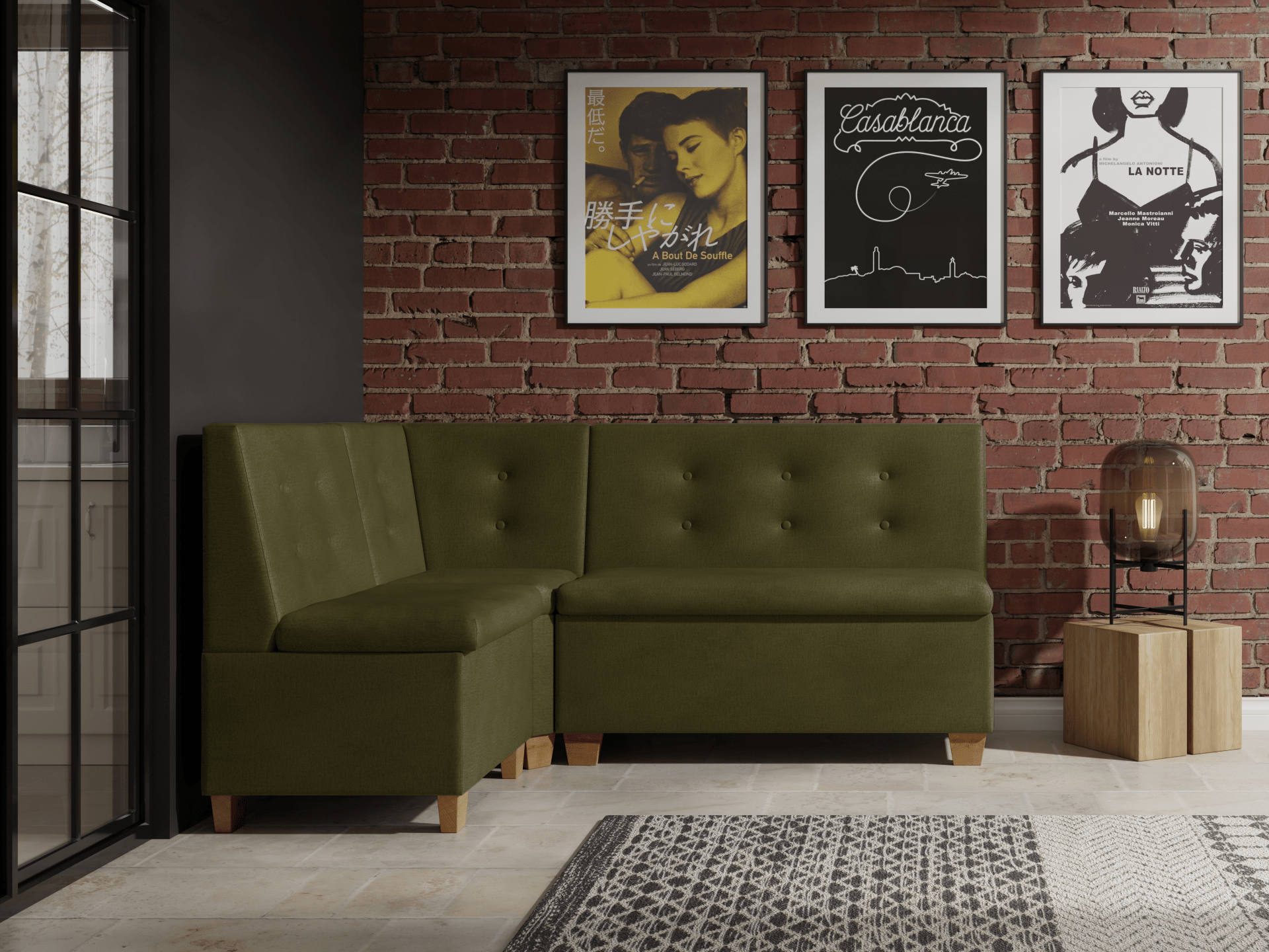 Do wyboru masz kolor nóg, dzięki czemu dopasujesz narożnik do stylu wnętrza. Ozdobne guziki na oparciu nadają mu klasyczny, a zarazem nowoczesny charakter. W cenie otrzymujesz również mocną, wytrzymałą tkaninę, odporną na codzienne użytkowanie.