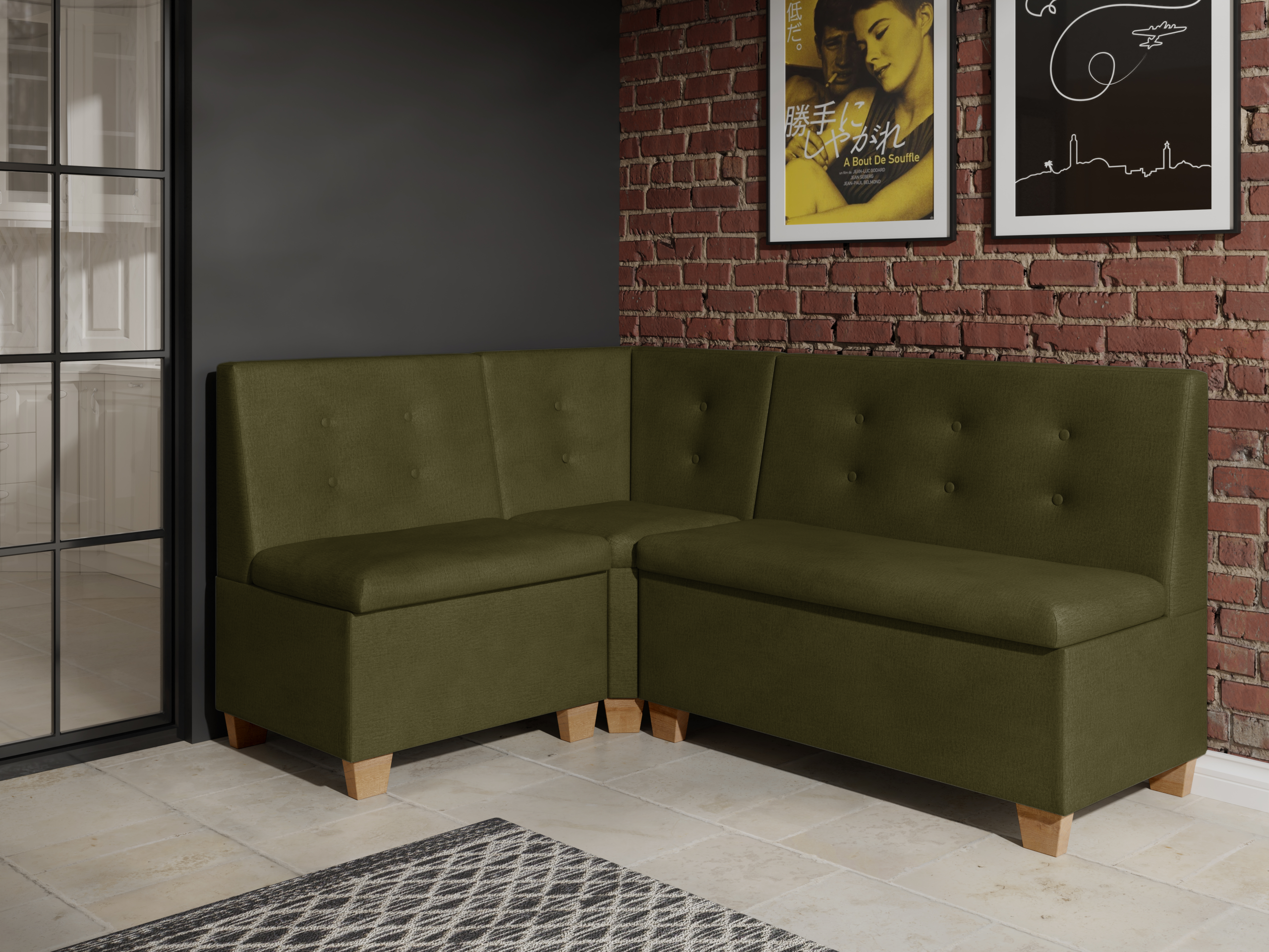 Narożnik kuchenny Barcelona 140×180 ze schowkami oliwkowy welur