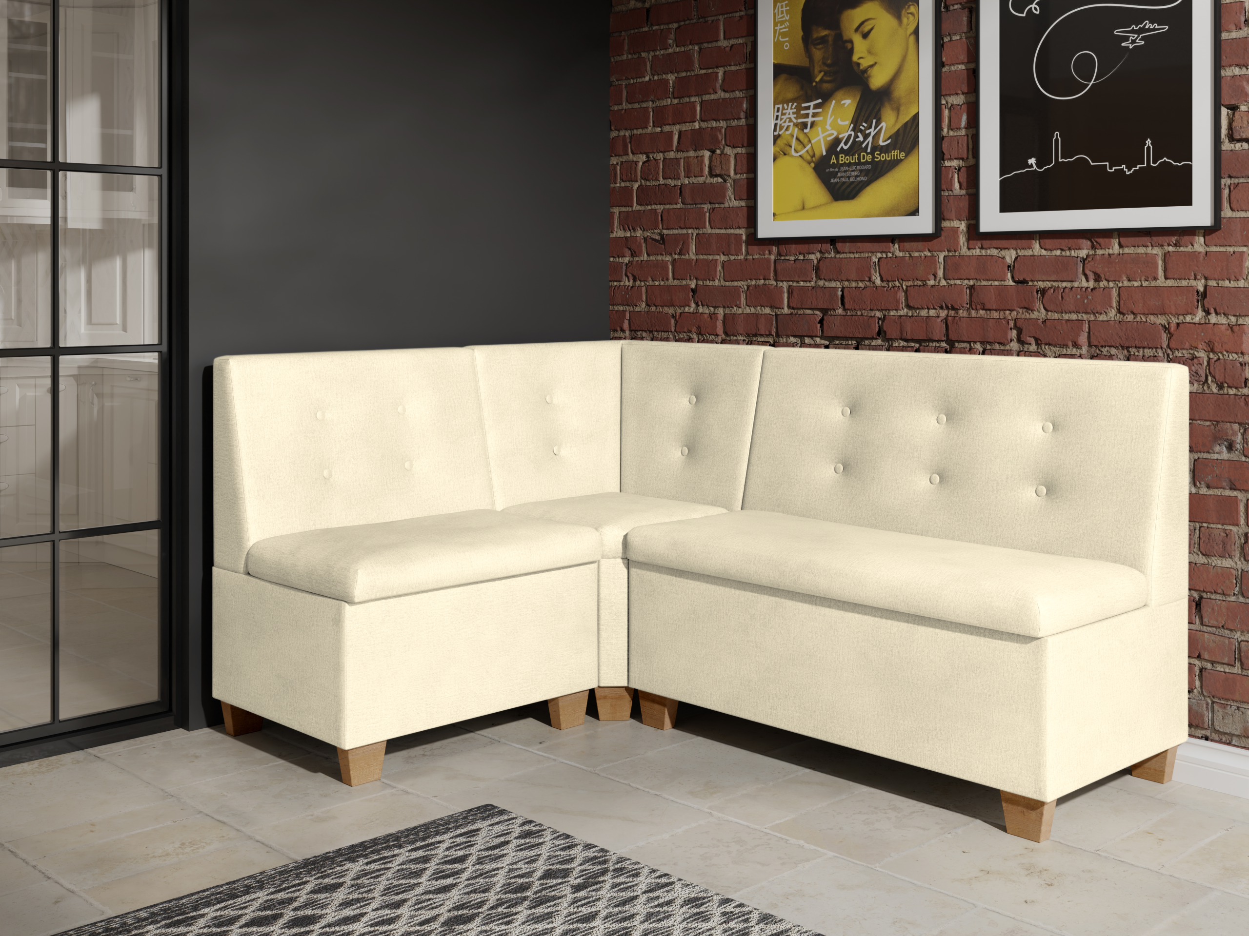 Narożnik kuchenny Barcelona 130×170 ze schowkami kremowy welur