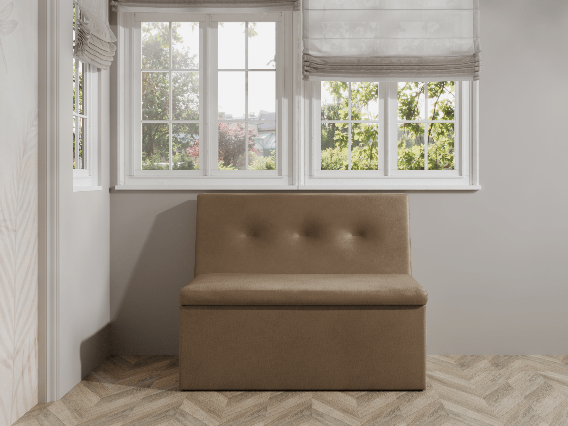 Ławka została wyposażona w praktyczne schowki pod siedziskiem, które pomogą Ci utrzymać porządek i zyskać dodatkowe miejsce do przechowywania. Wygodne siedzisko z wysokiej jakości pianki T30 zapewnia komfort na co dzień, nawet podczas dłuższego siedzenia.